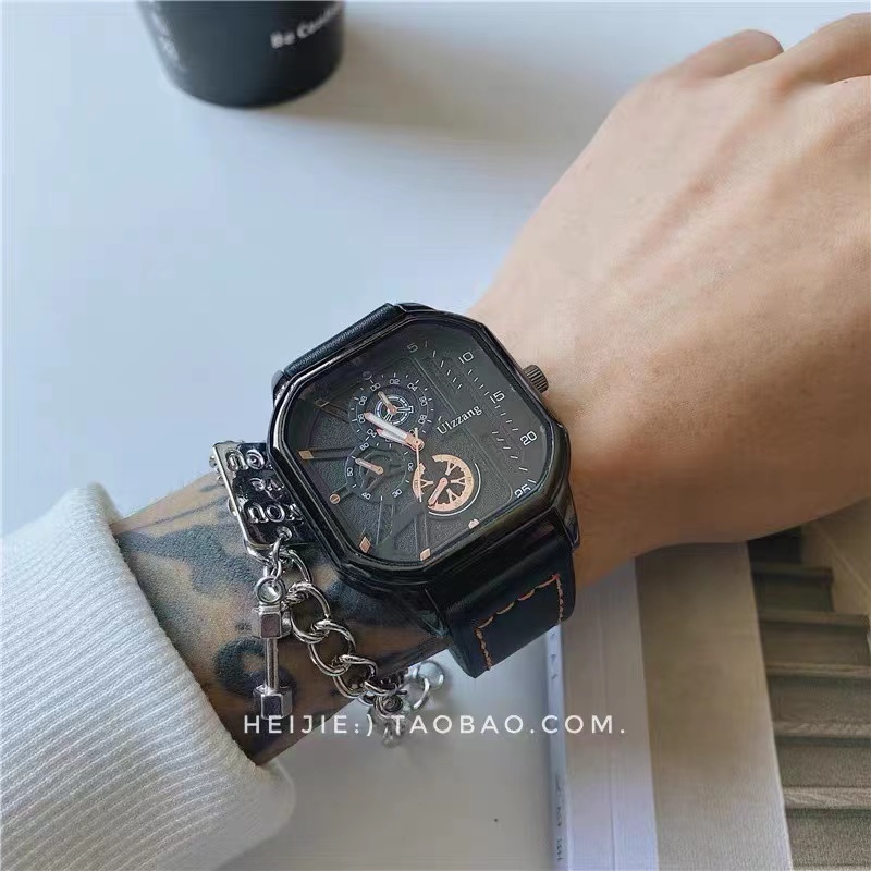 Квадратные швейцарские часы, трендовые мужские часы, циферблат, ремень, кварцевые часы, 2024 года, подходит для подростков