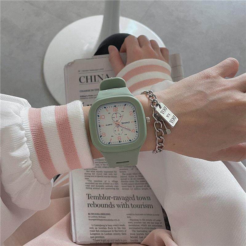 Квадратные летние небольшие дизайнерские брендовые цифровые часы, женский стиль