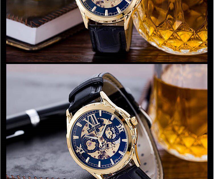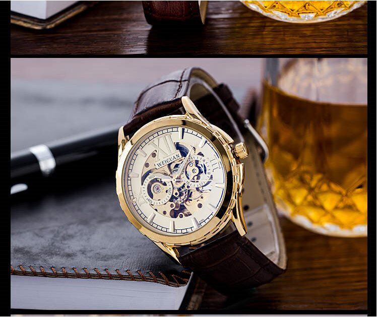 Мужские механические трендовые водонепроницаемые часы, из натуральной кожи, полностью автоматический, в корейском стиле