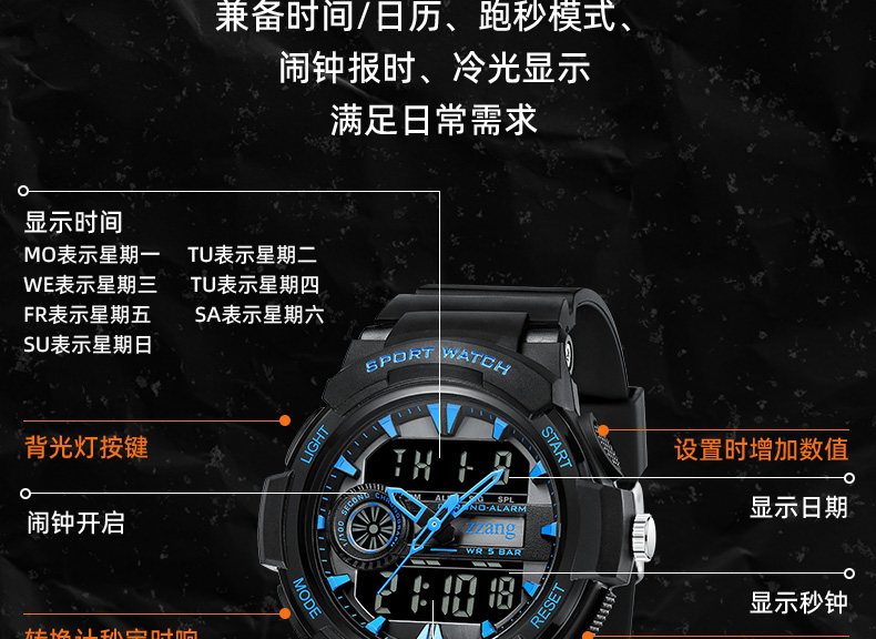 Мужские часы, механические водонепроницаемые трендовые цифровые часы, подходит для подростков, для средней школы