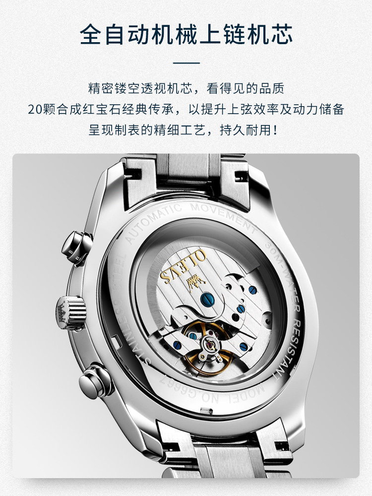 Механические швейцарские часы, мужские часы, механические часы, водонепроницаемый стальной ремешок, полностью автоматический