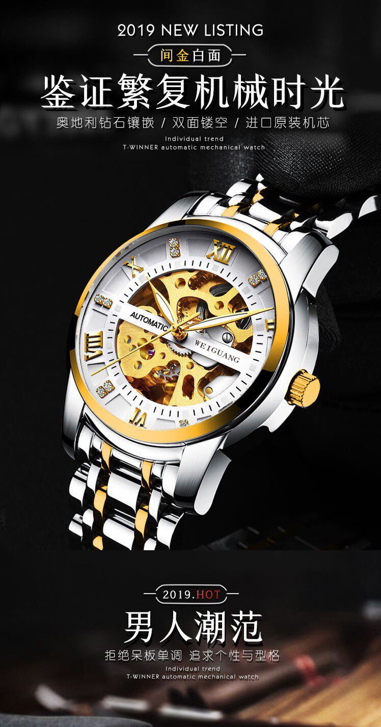 Механические водонепроницаемые модные мужские часы, полностью автоматический, 2020, Швейцария