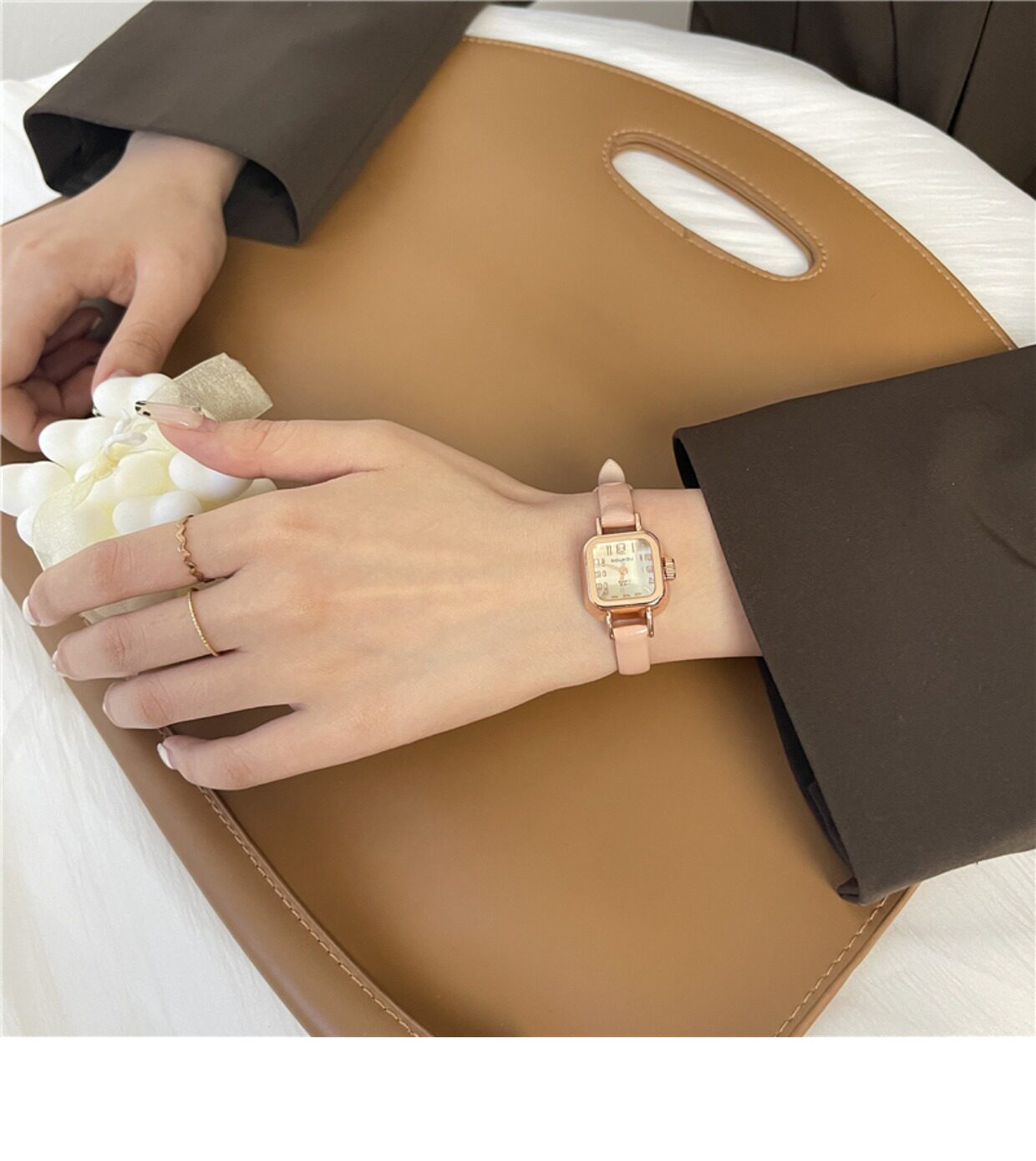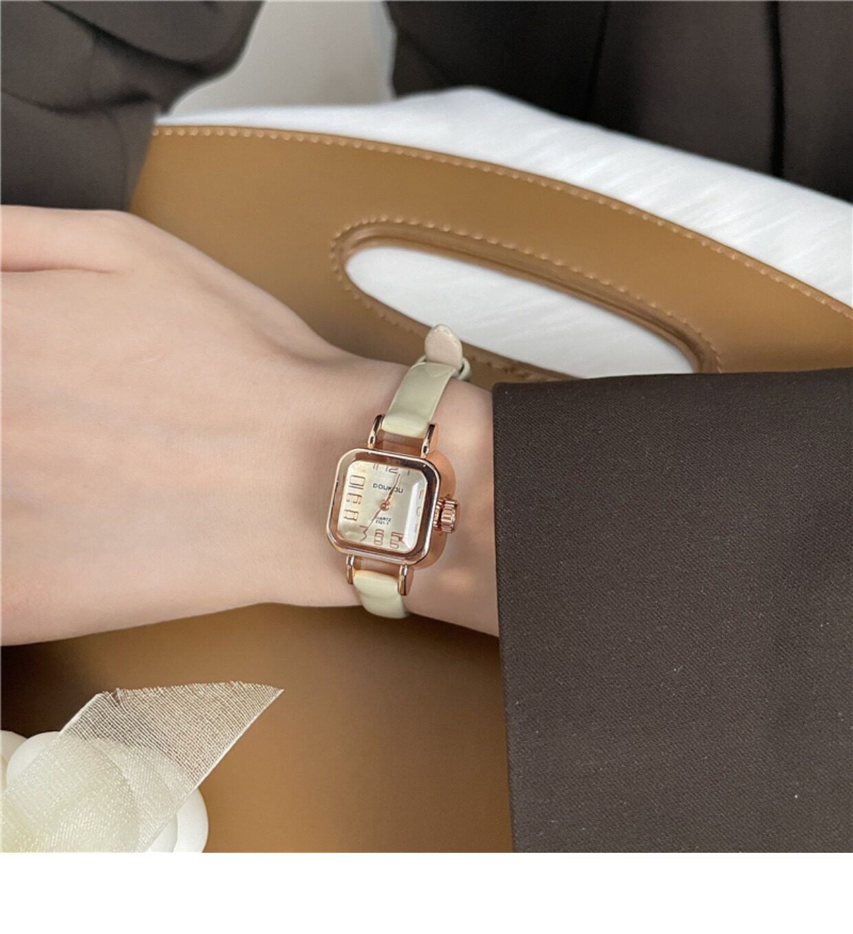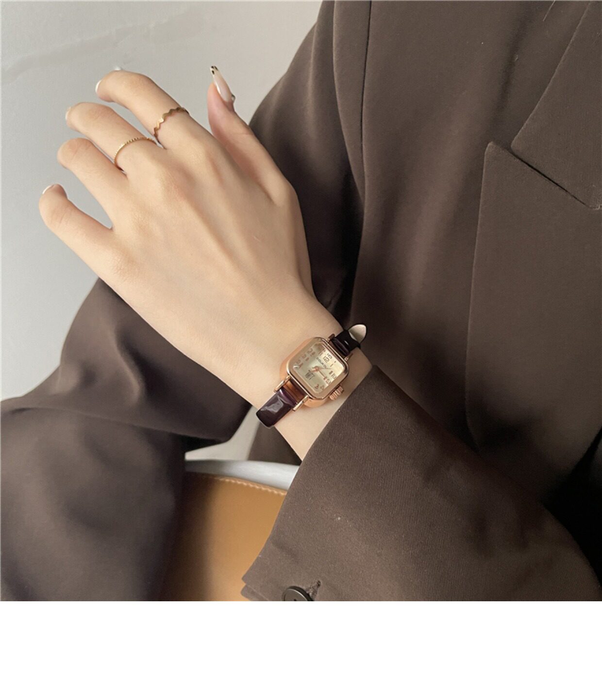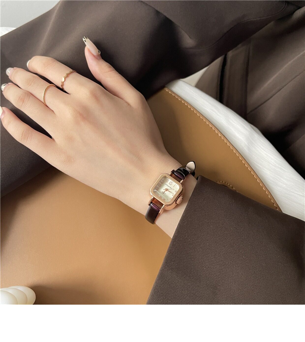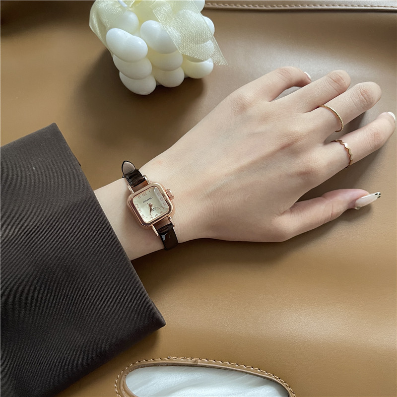 Брендовые ретро часы, квадратный маленький кварцевый ремень для отдыха, женский стиль, простой и элегантный дизайн, в корейском стиле, легкий роскошный стиль
