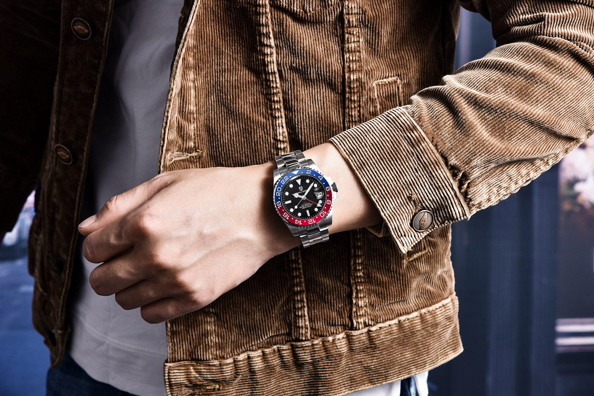 Модный механический водонепроницаемый сапфировый календарь, мужские часы из нержавеющей стали