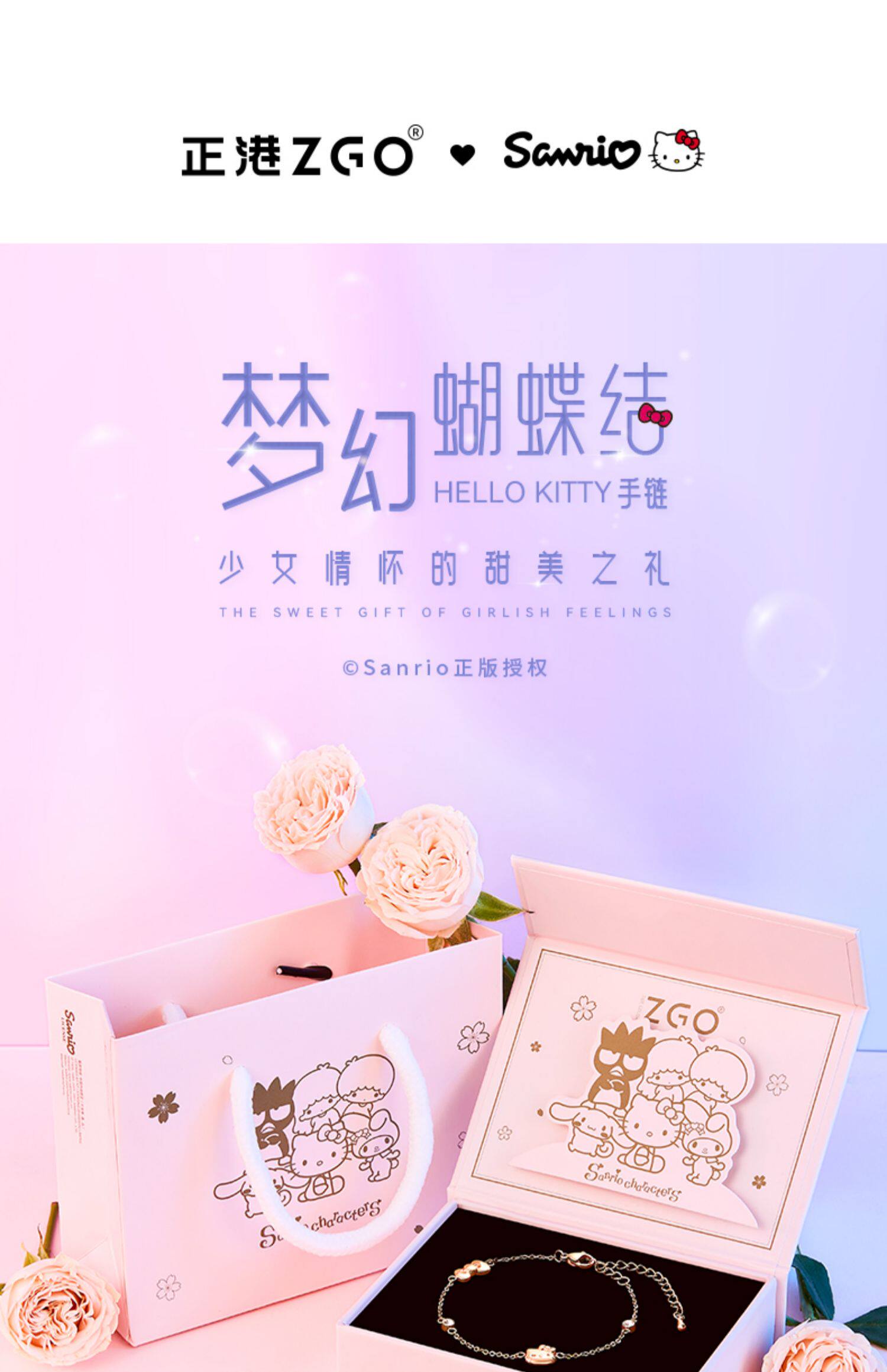 正港 Hello Kitty, hello kitty, браслет для влюбленных, ожерелье, простой и элегантный дизайн, подарок на день рождения
