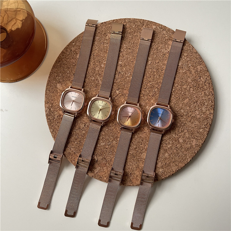 Маленькие универсальные небольшие дизайнерские квадратные брендовые кварцевые часы, Франция, простой и элегантный дизайн
