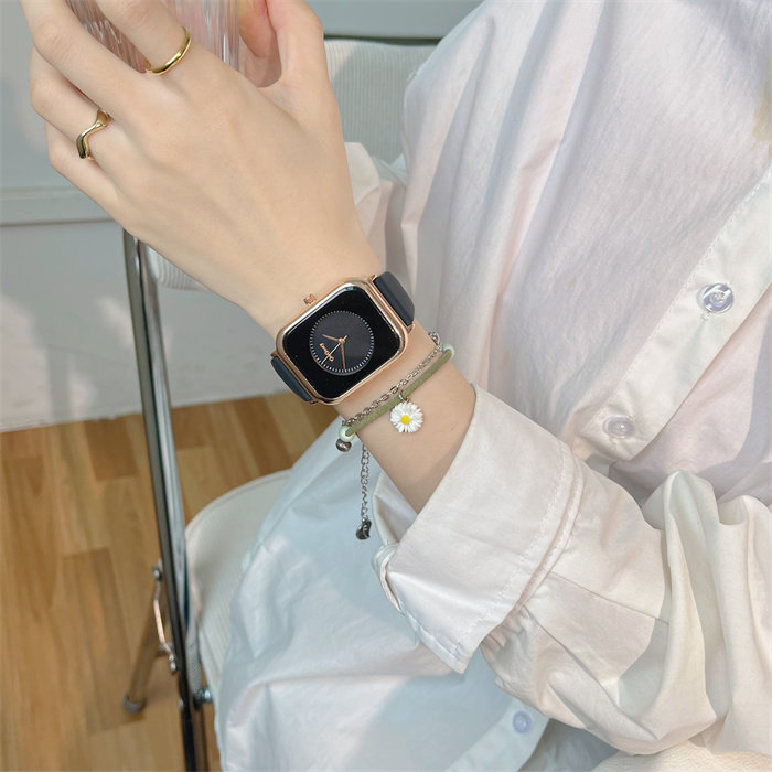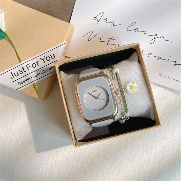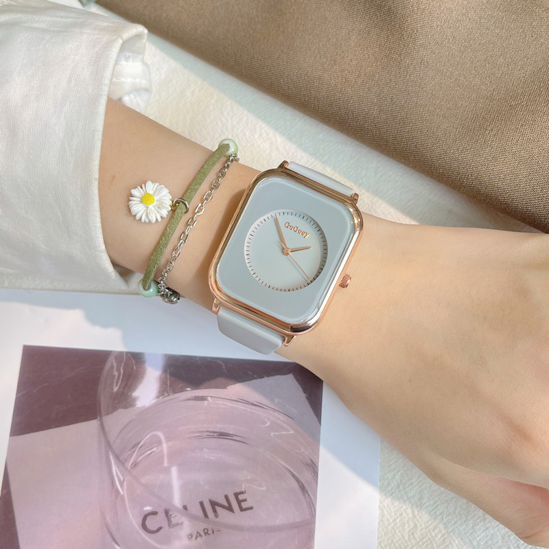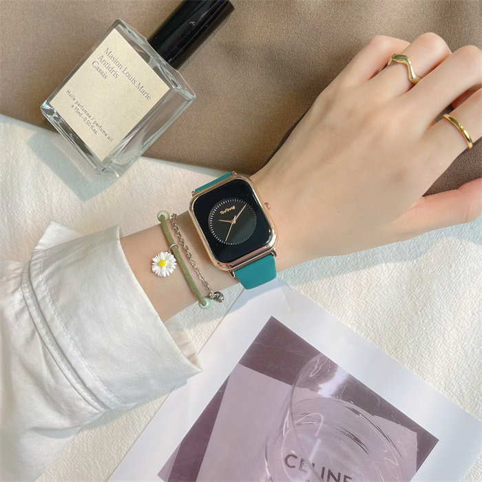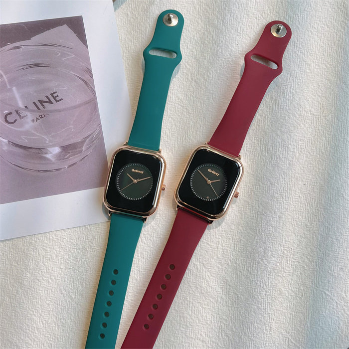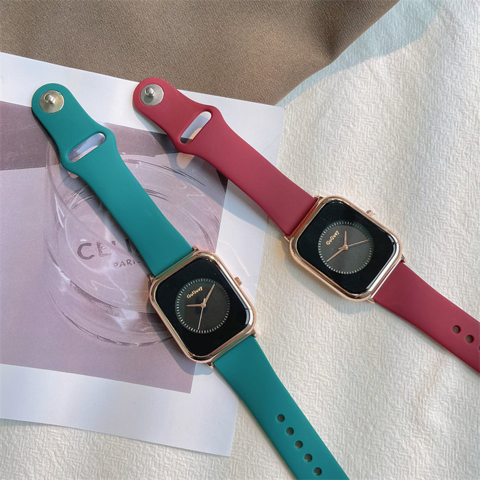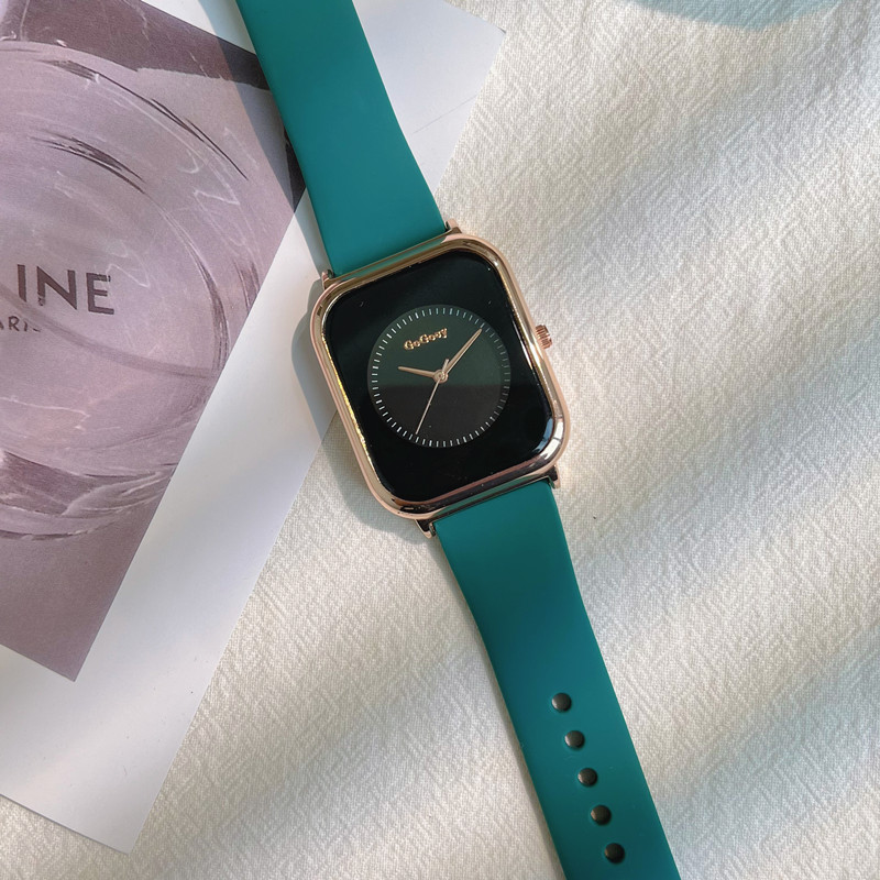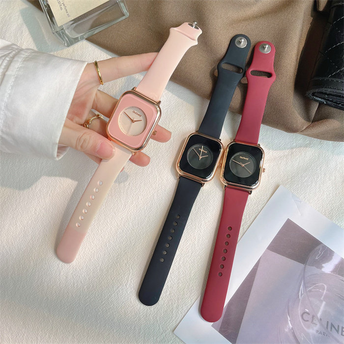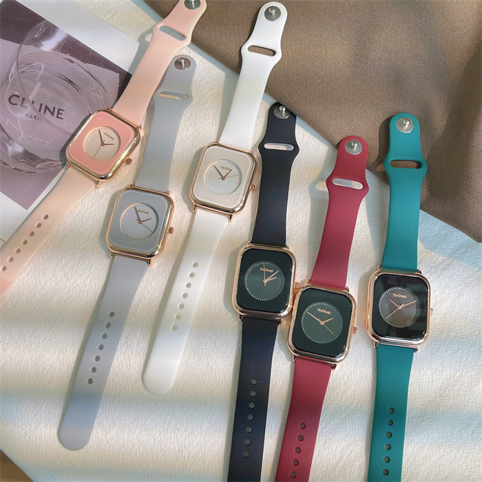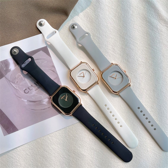 Летняя силиконовая брендовая небольшая дизайнерская лента, модные квадратные кварцевые женские часы, простой и элегантный дизайн, легкий роскошный стиль