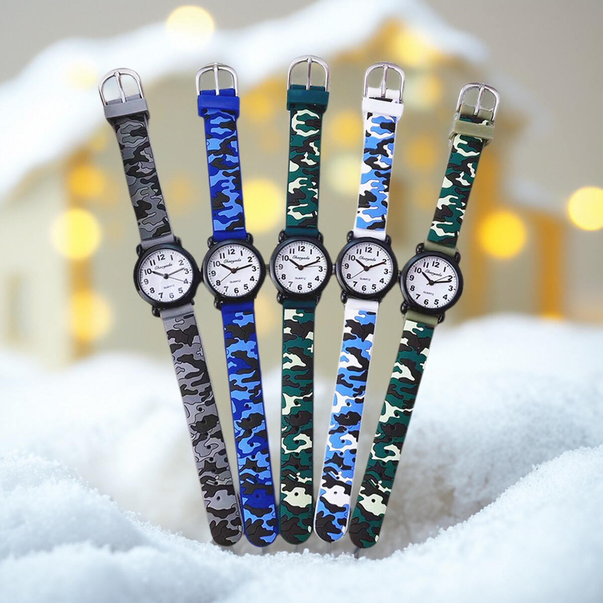 Маленькие камуфляжные дорожные детские кварцевые часы для мальчиков для раннего возраста для школьников, водонепроницаемая электронная неоновая игрушка