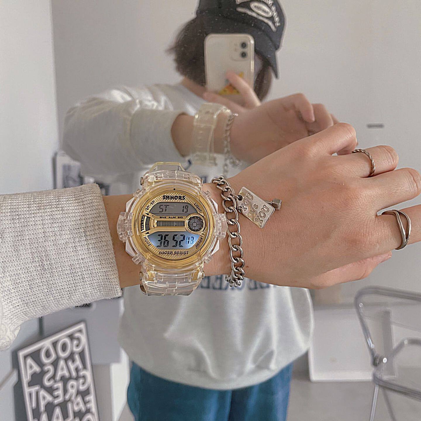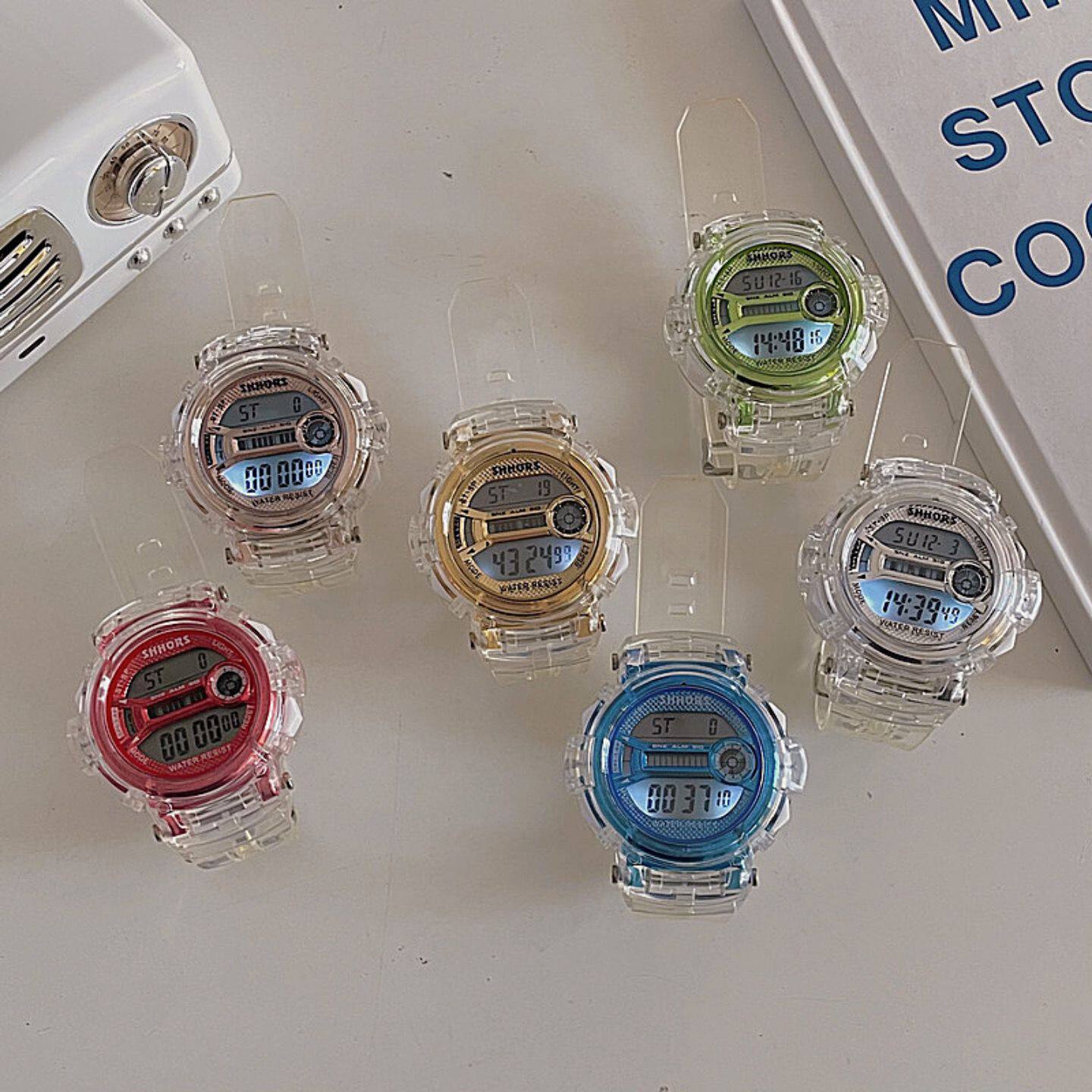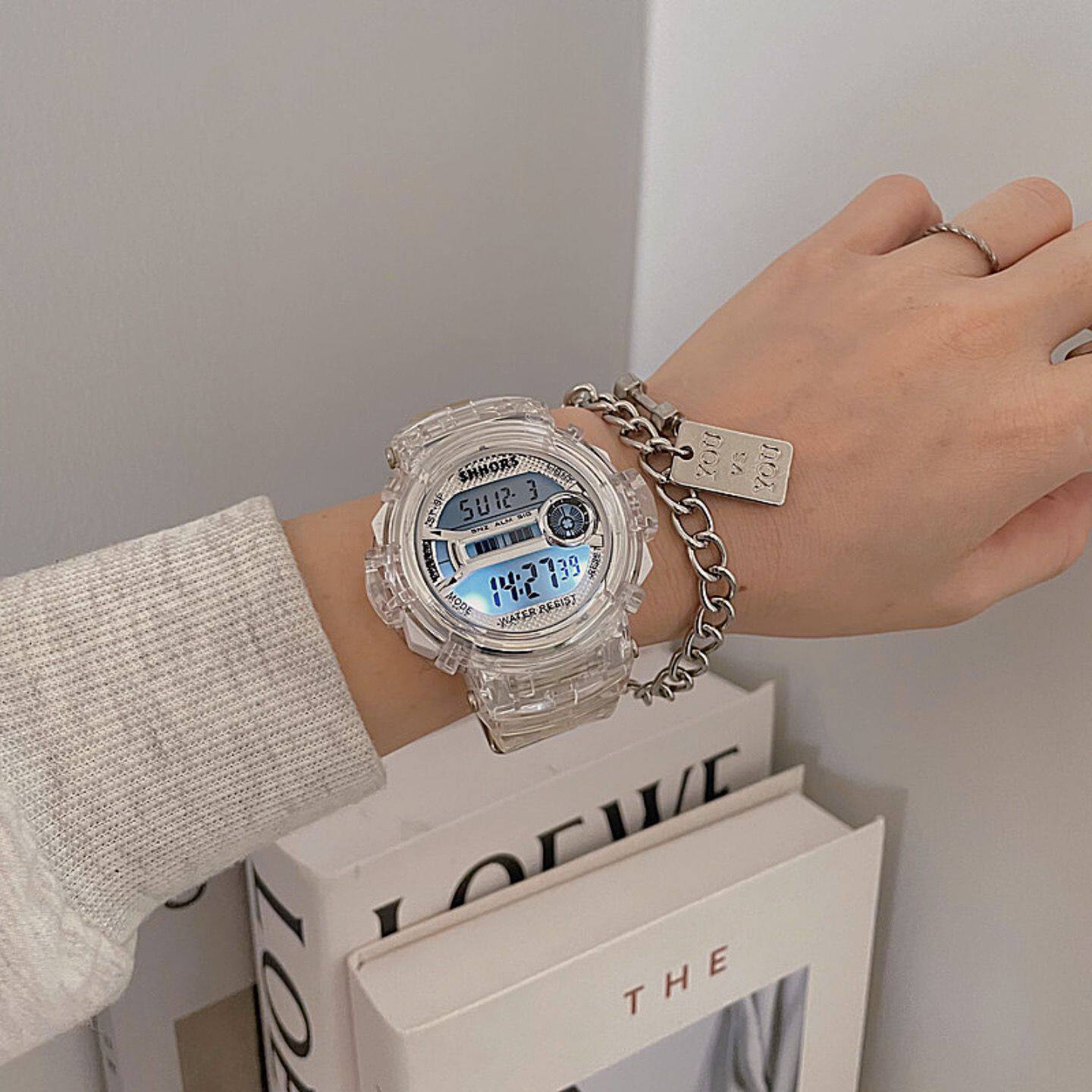 Прозрачные электронные брендовые неоновые трендовые часы, женский стиль, подходит для подростков