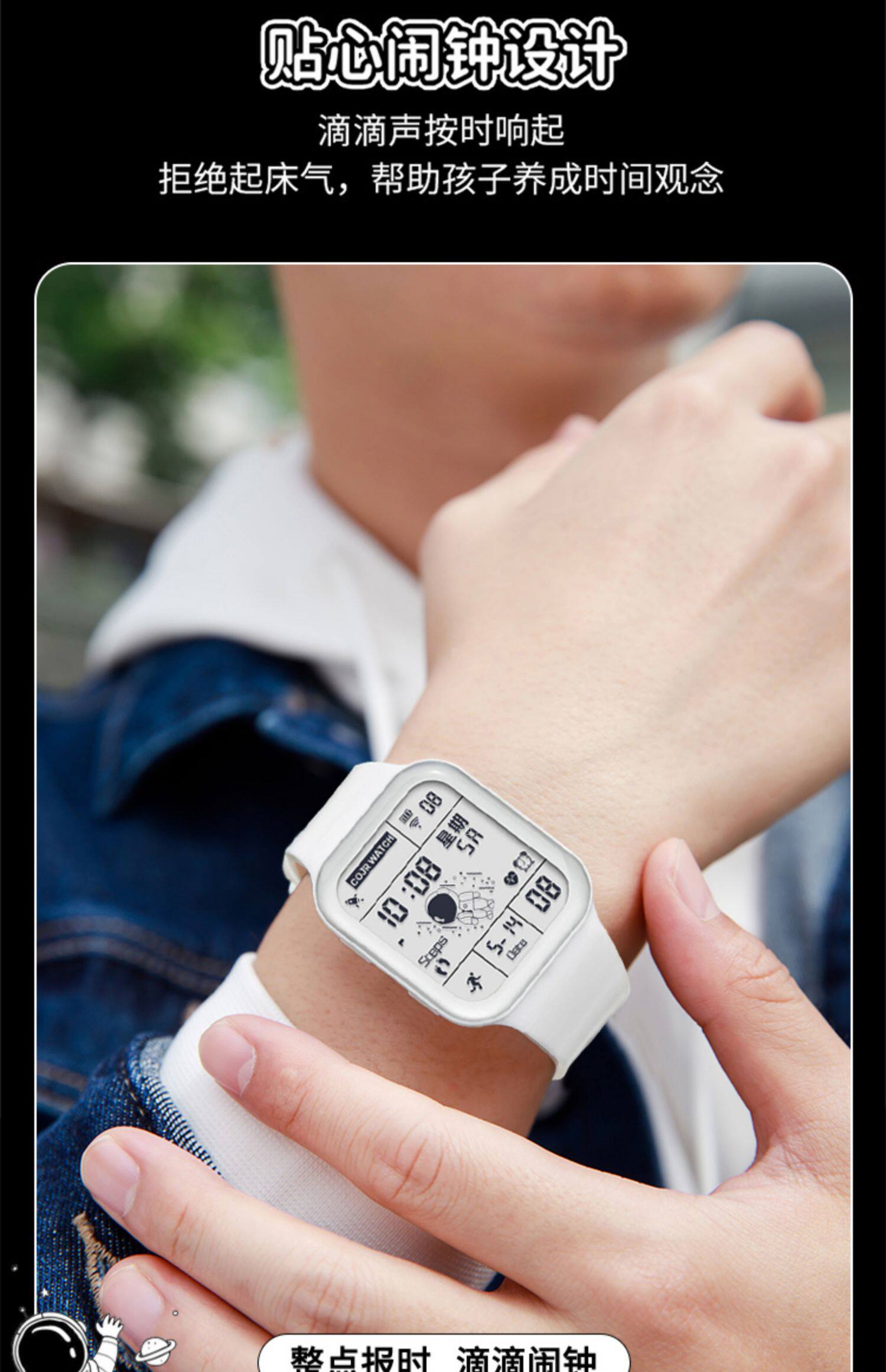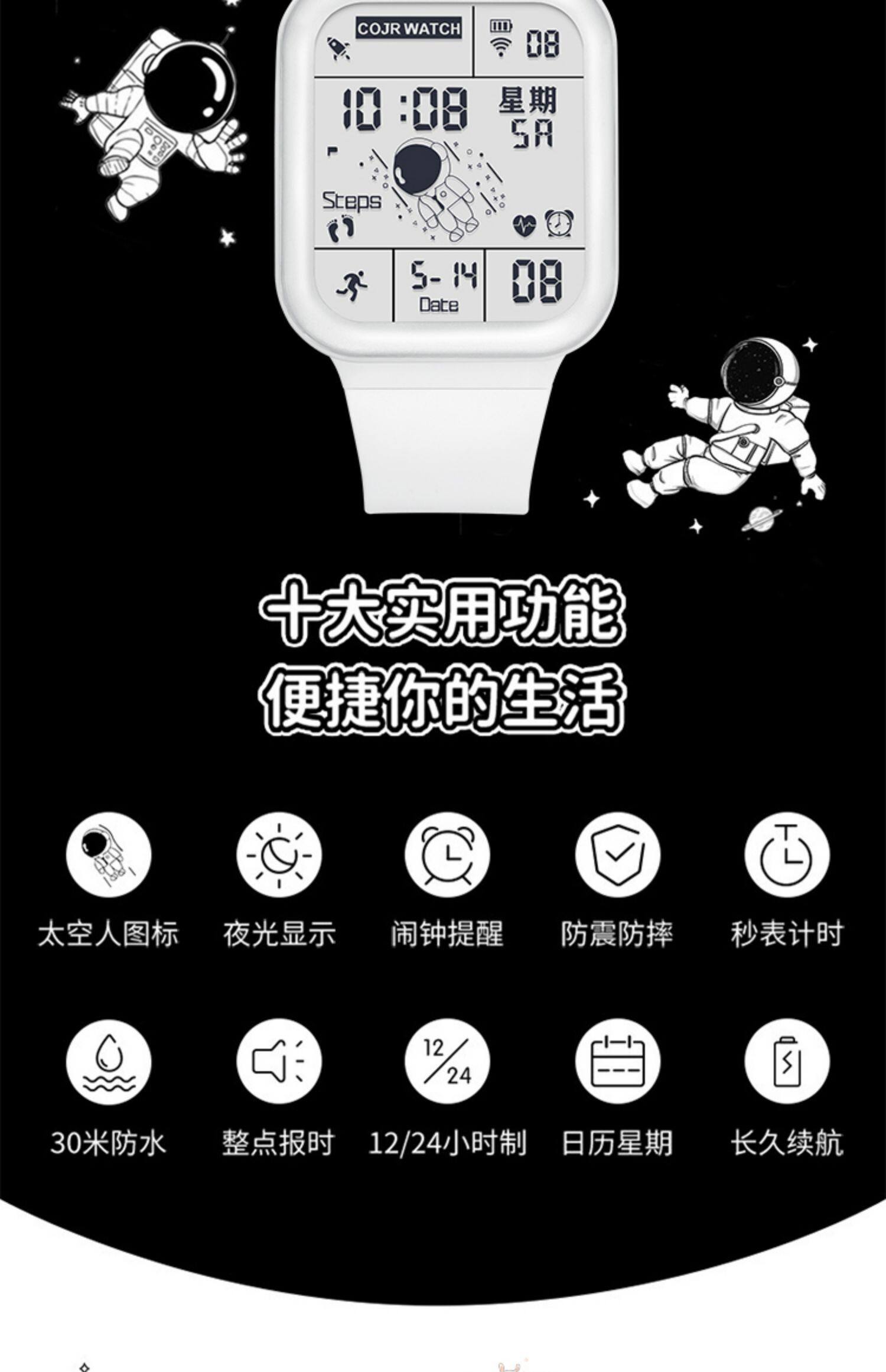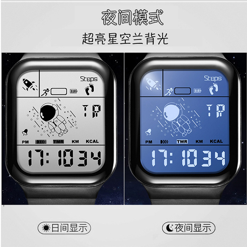 Квадратные космические трендовые универсальные водонепроницаемые детские электронные мужские часы подходит для мужчин и женщин, подходит для подростков