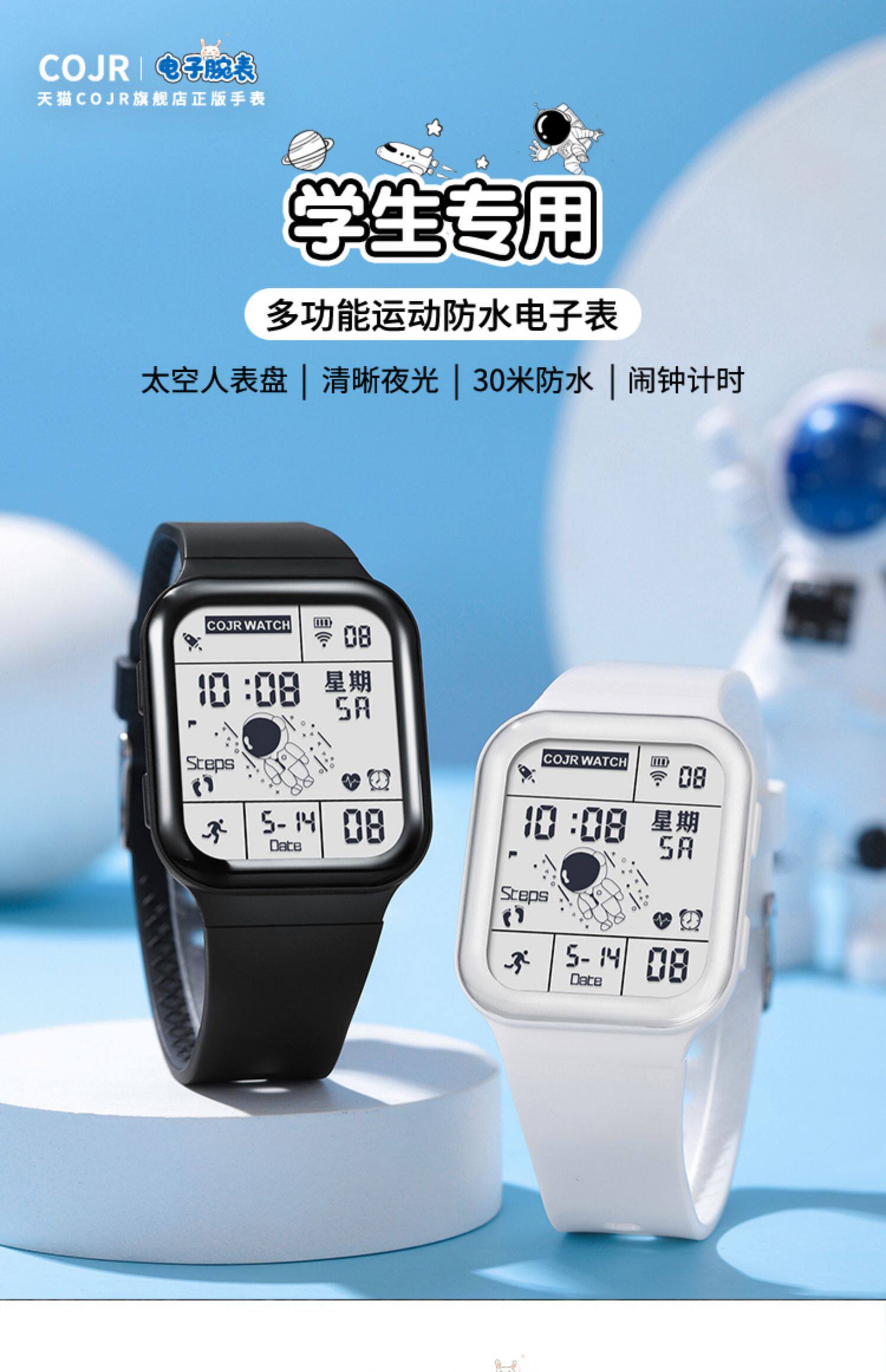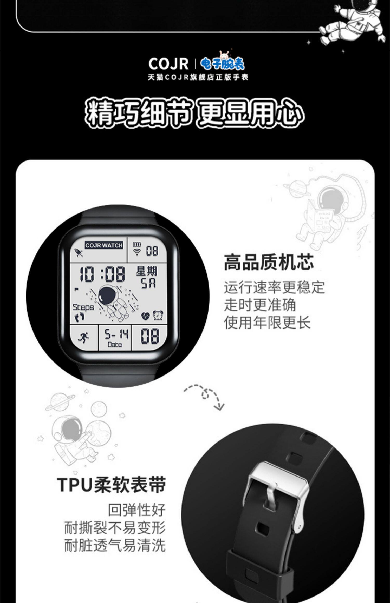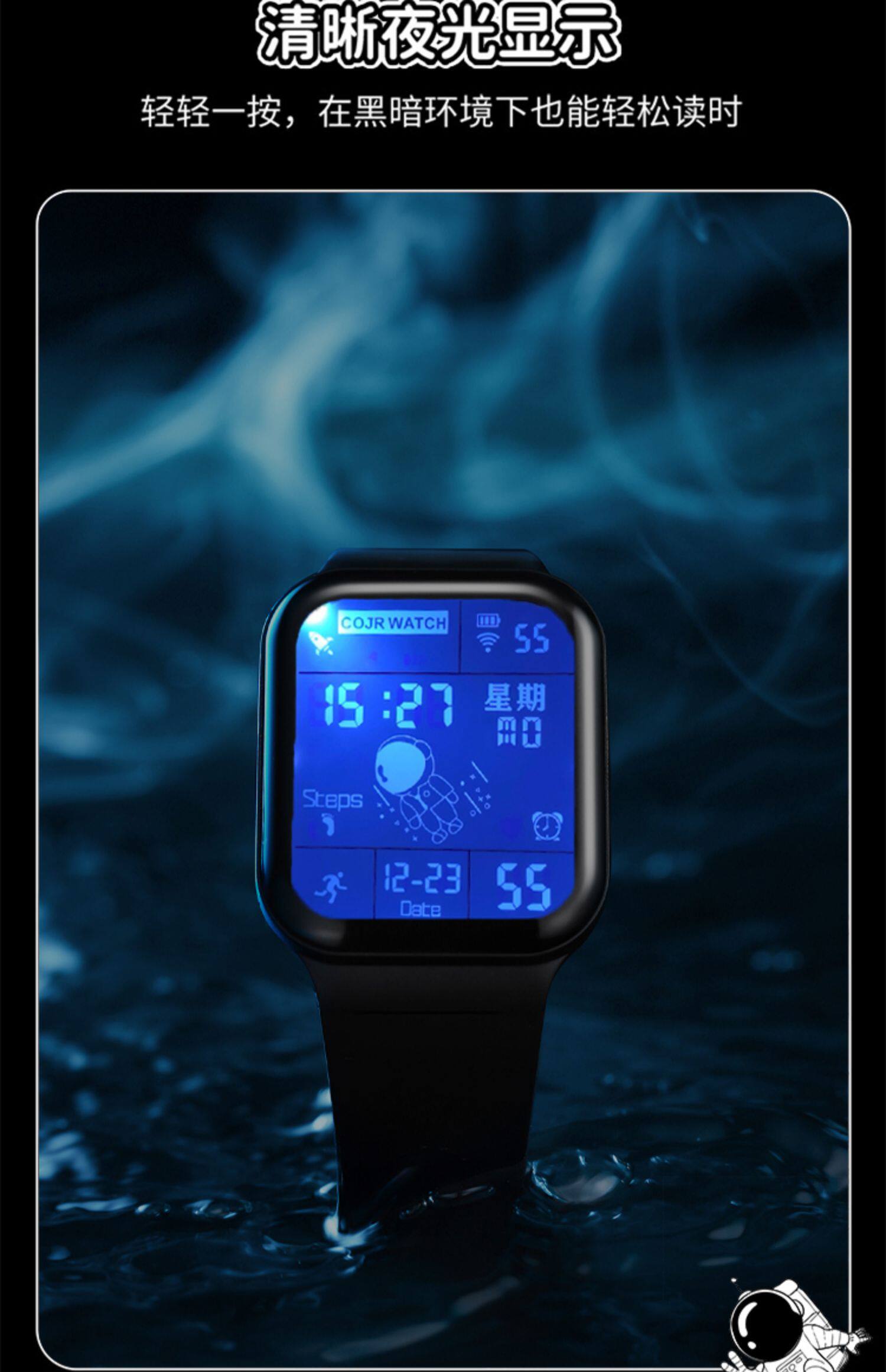 Квадратные космические трендовые универсальные водонепроницаемые детские электронные мужские часы подходит для мужчин и женщин, подходит для подростков