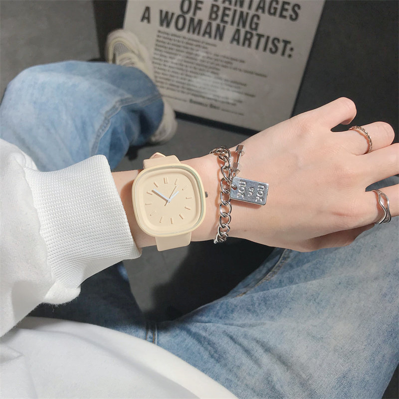 Кремовое фруктовое масло, квадратные брендовые часы, популярно в интернете, простой и элегантный дизайн, в корейском стиле
