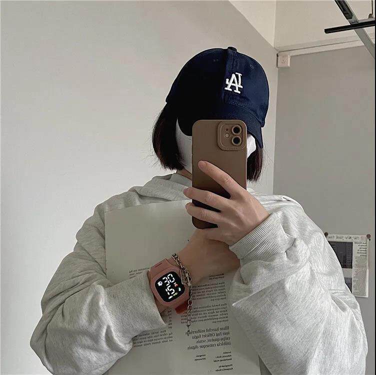 Квадратные брендовые водонепроницаемые цифровые часы, популярно в интернете, простой и элегантный дизайн, с LED дисплеем