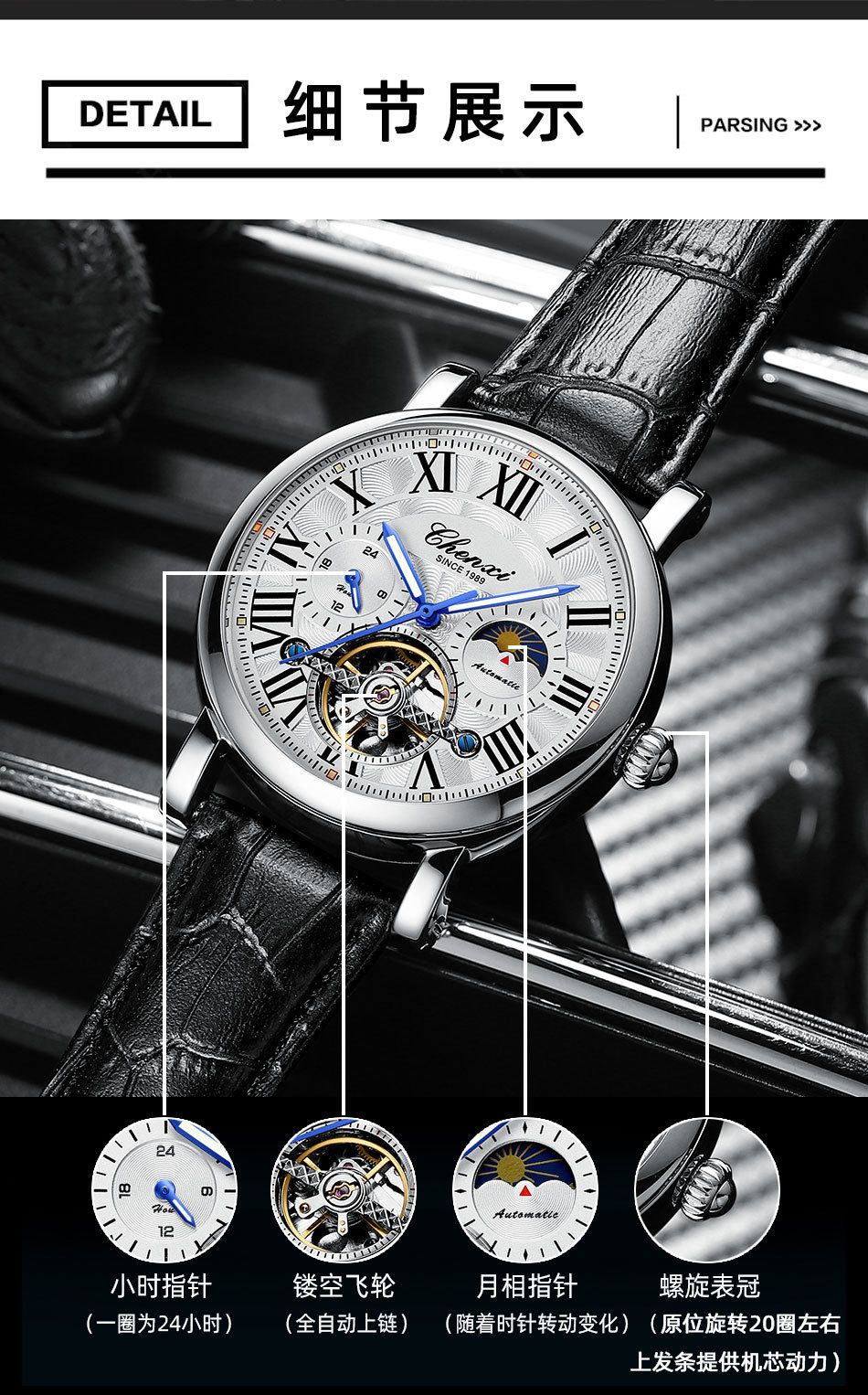 Швейцарские часы, водонепроницаемые мужские часы, механические механические часы для отдыха