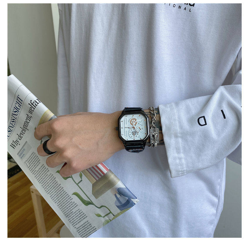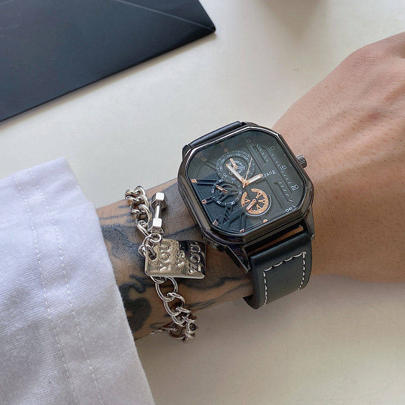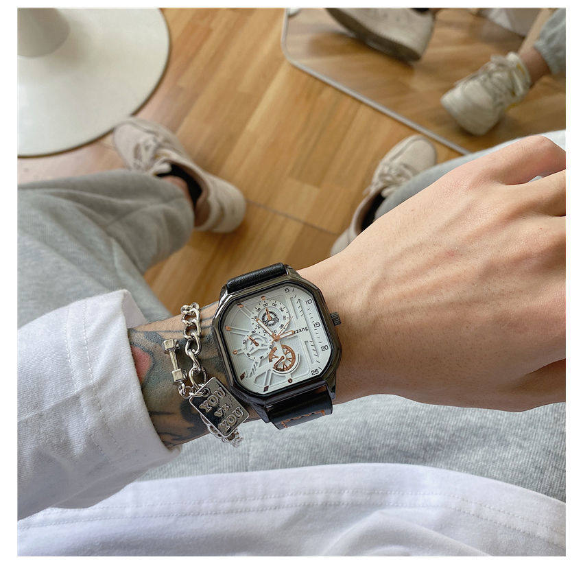 Квадратные швейцарские часы, трендовые мужские часы, механические механические часы, ремень, циферблат, подходит для подростков, подходит для студента