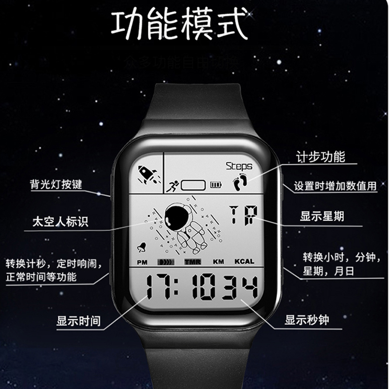 Квадратные космические мужские часы для мальчиков, универсальные водонепроницаемые детские цифровые часы, для средней школы, подходит для подростков