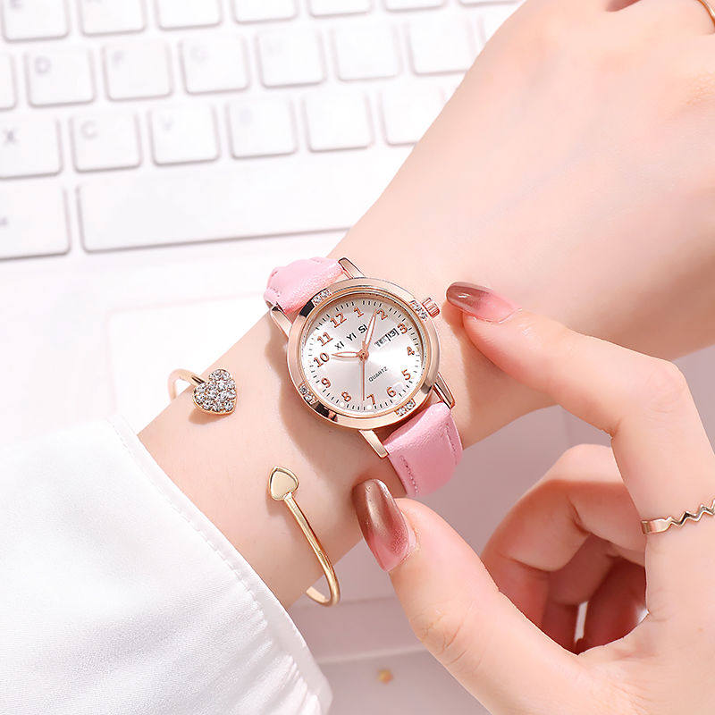 Детские часы, милый модный трендовый календарь, кварцевый ремень, женский стиль, простой и элегантный дизайн
