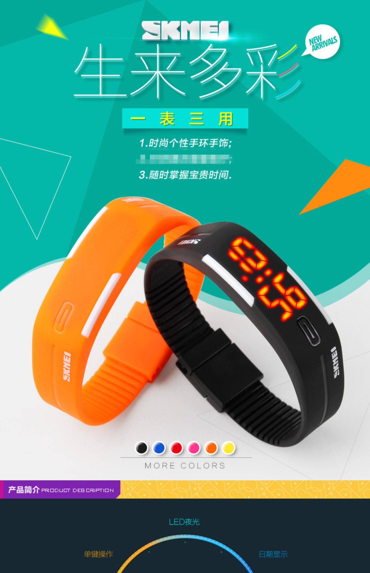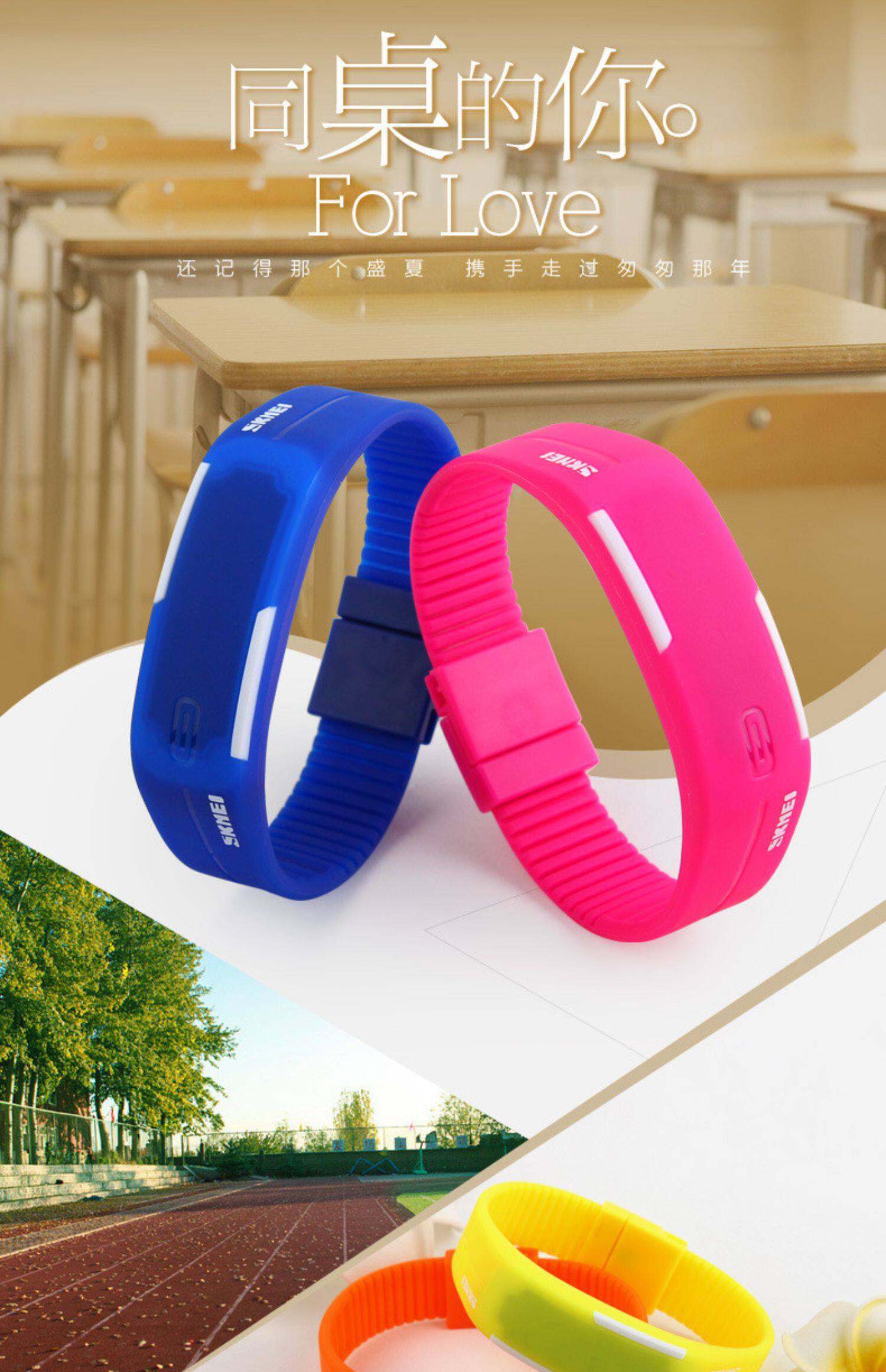 Модный трендовый водонепроницаемый детский браслет подходит для мужчин и женщин, цифровые часы, в корейском стиле, для влюбленных