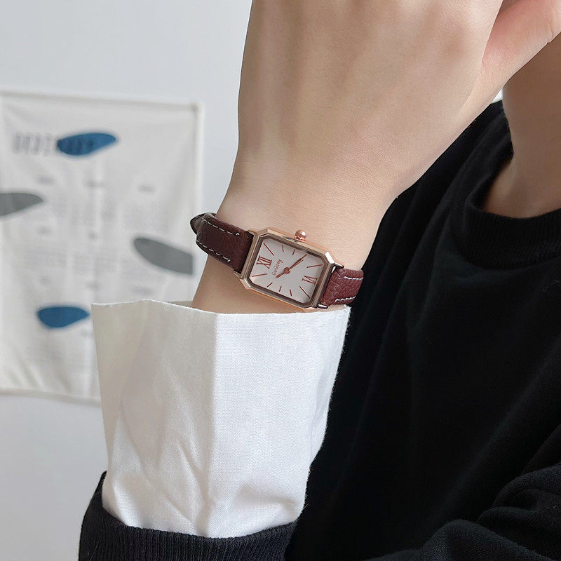 Свежие высококачественные квадратные брендовые квадратные часы, ремень, женские часы, простой и элегантный дизайн