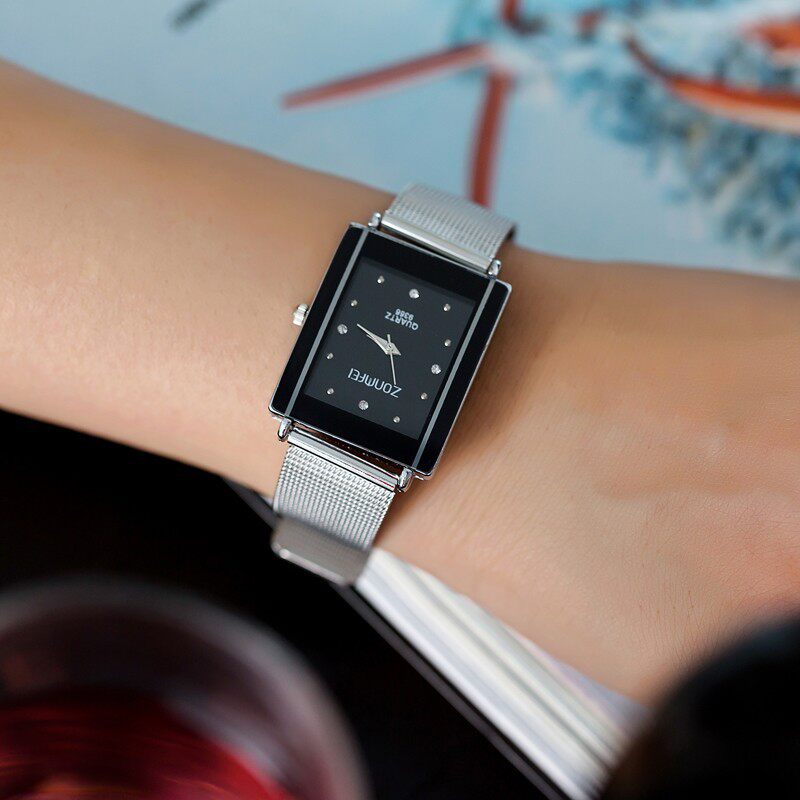 Модные прямоугольные механические кварцевые мужские часы подходит для мужчин и женщин из нержавеющей стали, городской стиль, в корейском стиле, изысканный стиль