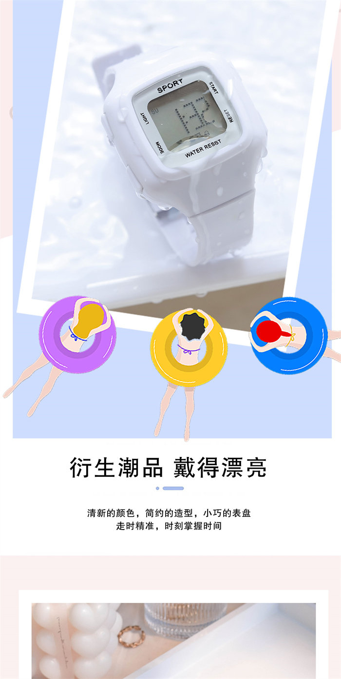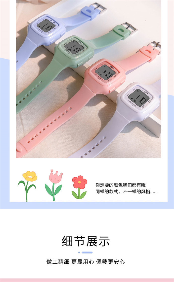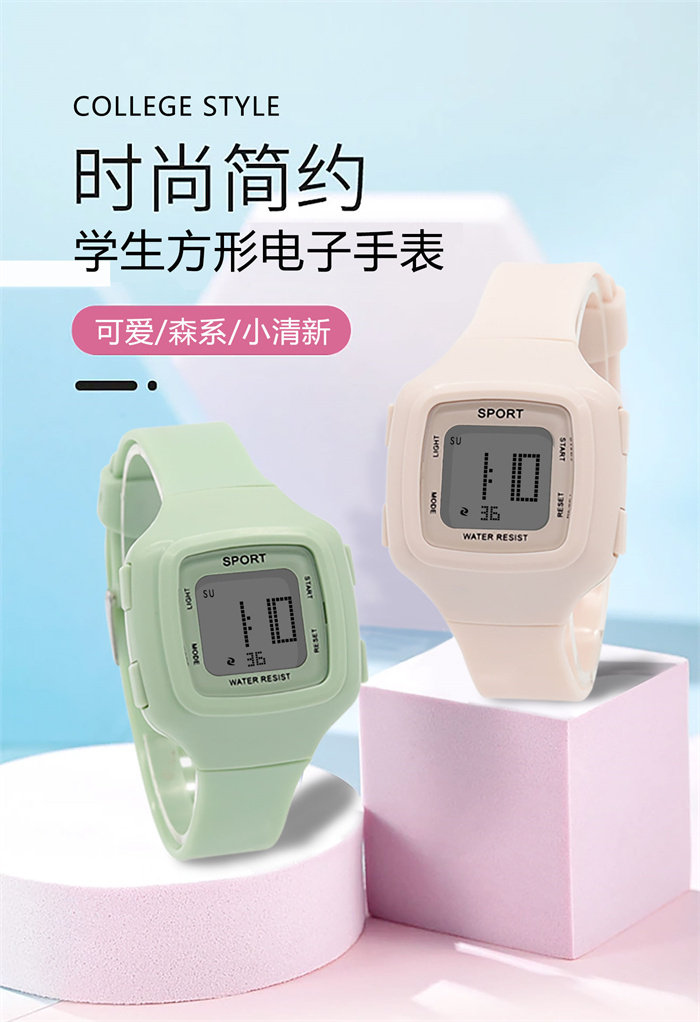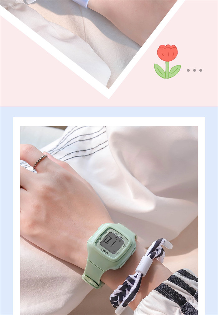 Милые свежие детские часы, модные квадратные водонепроницаемые цифровые часы, простой и элегантный дизайн, защита при падении