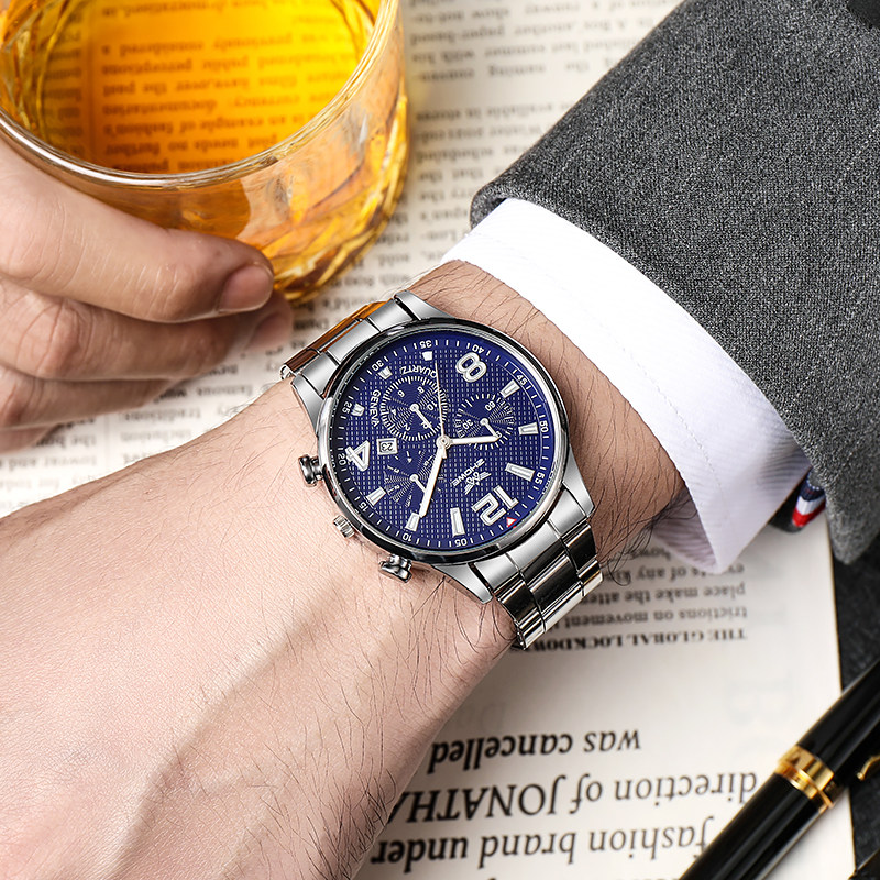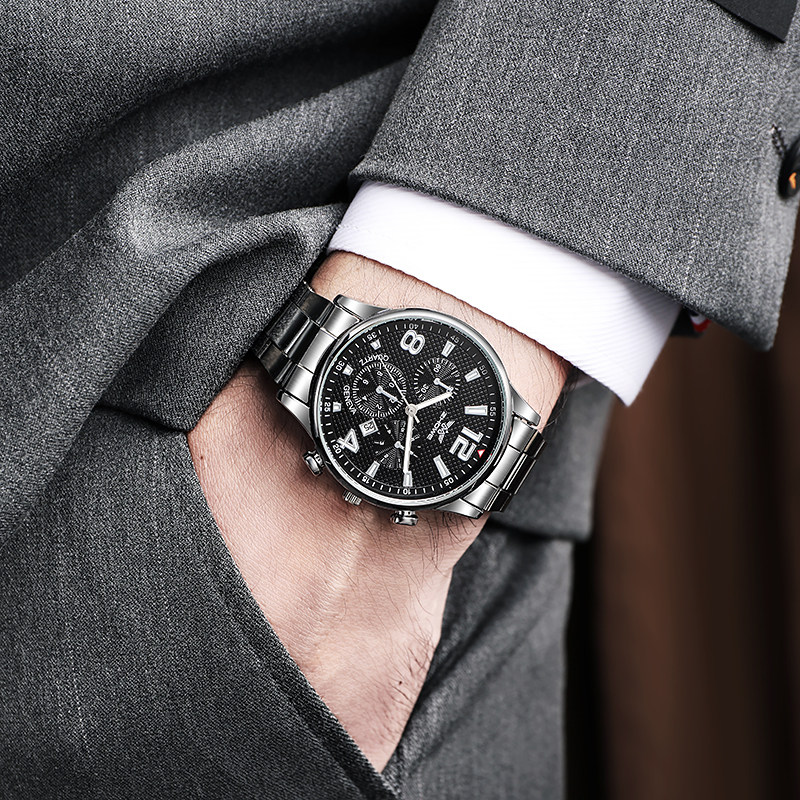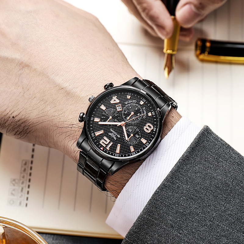 Циферблат, мужские часы, кварцевый модный календарь, стальной ремешок, коллекция 2022