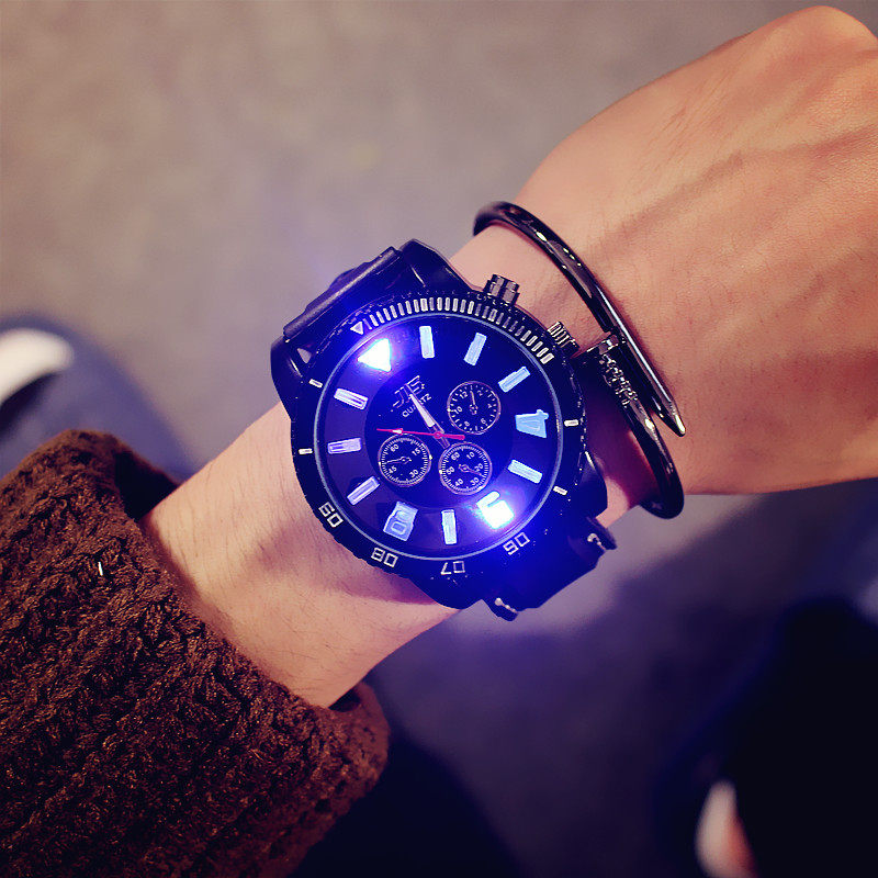 Трендовые неоновые мужские часы, вместительный и большой электронный циферблат, в корейском стиле