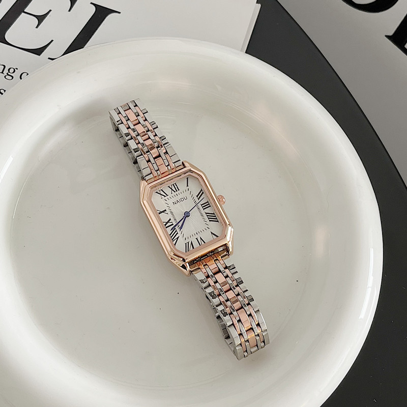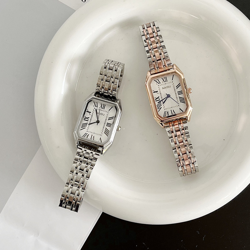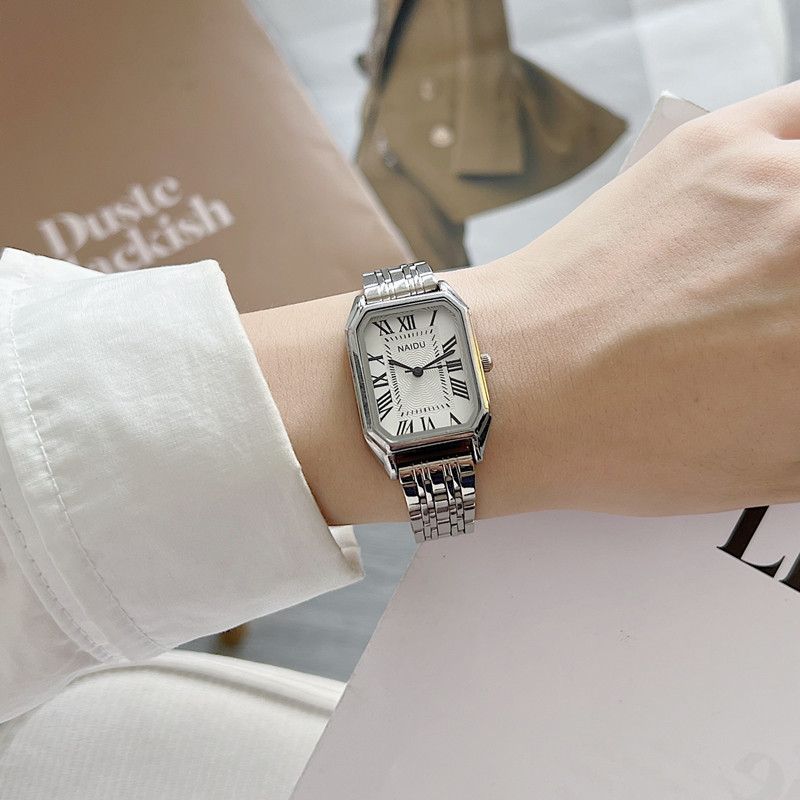 Ретро модный стальной ремешок, квадратные маленькие кварцевые часы, изысканный стиль, простой и элегантный дизайн