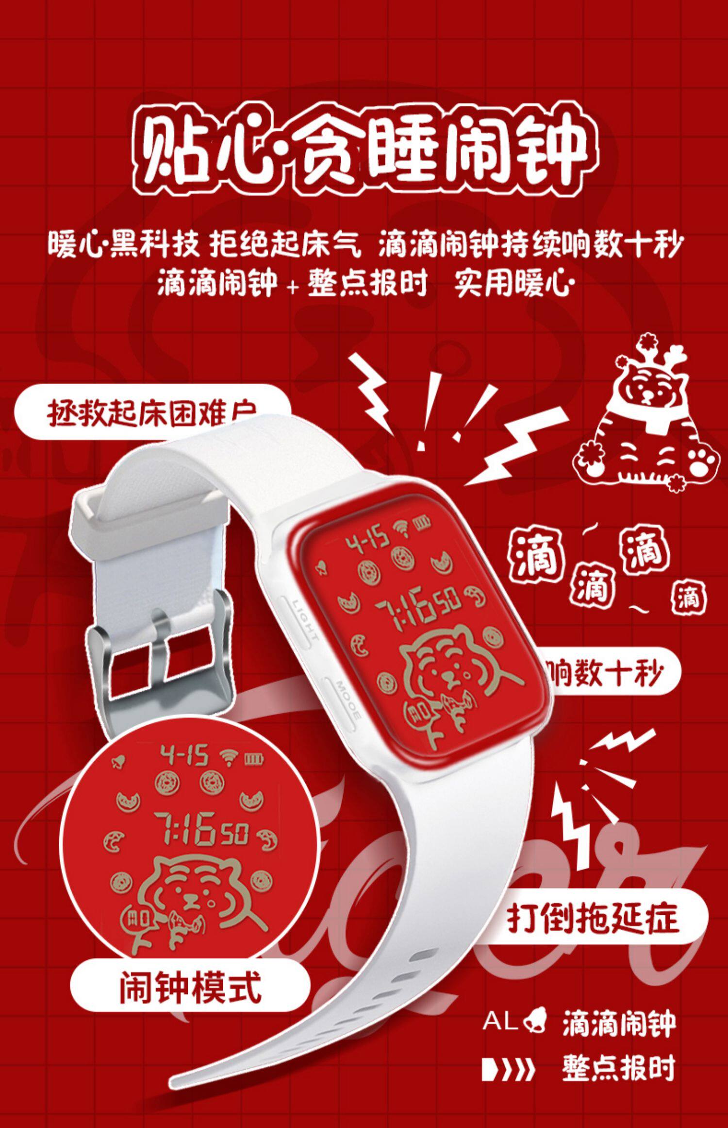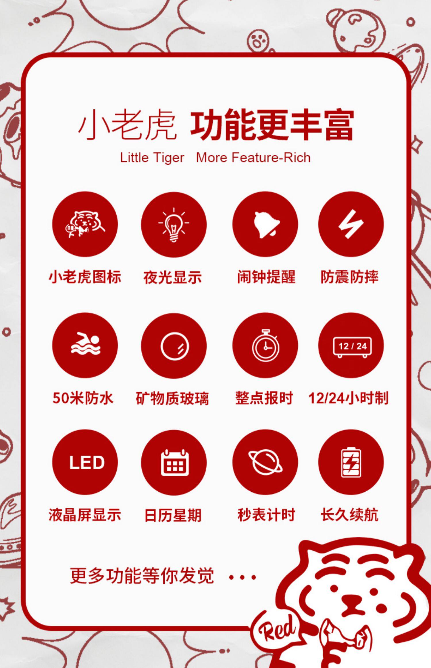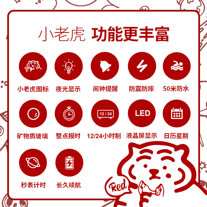 - Tiger 1.0 красный [светящийся+будильник+водонепроницаемый]