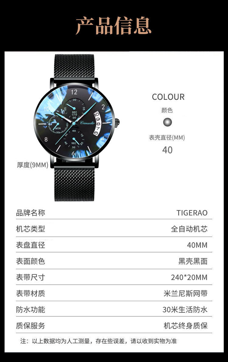 Ультратонкие механические механические часы, мужские часы, трендовый водонепроницаемый календарь, полностью автоматический, в корейском стиле, коллекция 2022