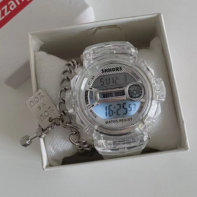 Водонепроницаемые прозрачные высококачественные универсальные цифровые часы, женский стиль, популярно в интернете