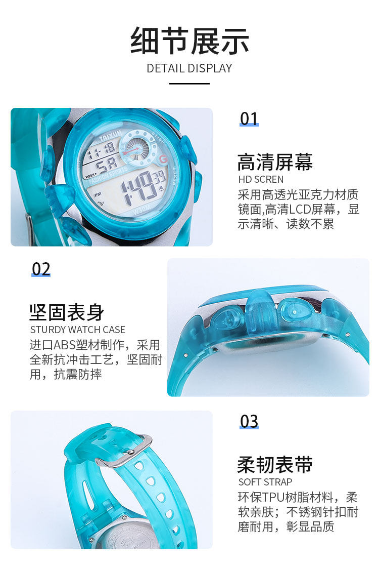 Детские водонепроницаемые электронные школьные детские часы для мальчиков и девочек