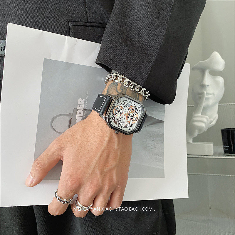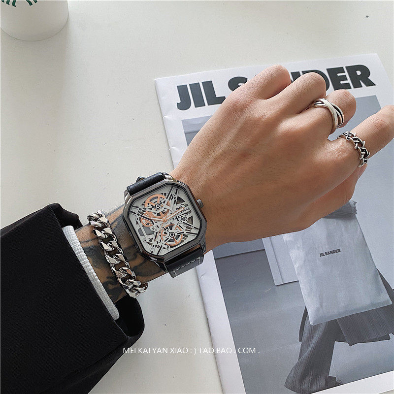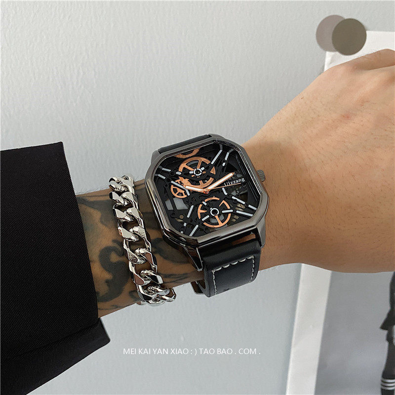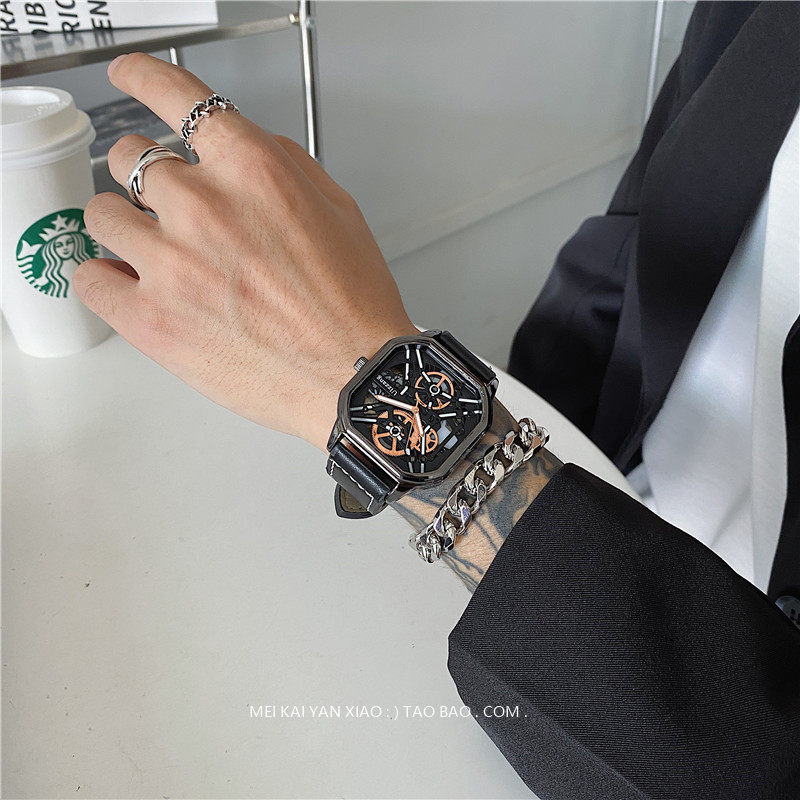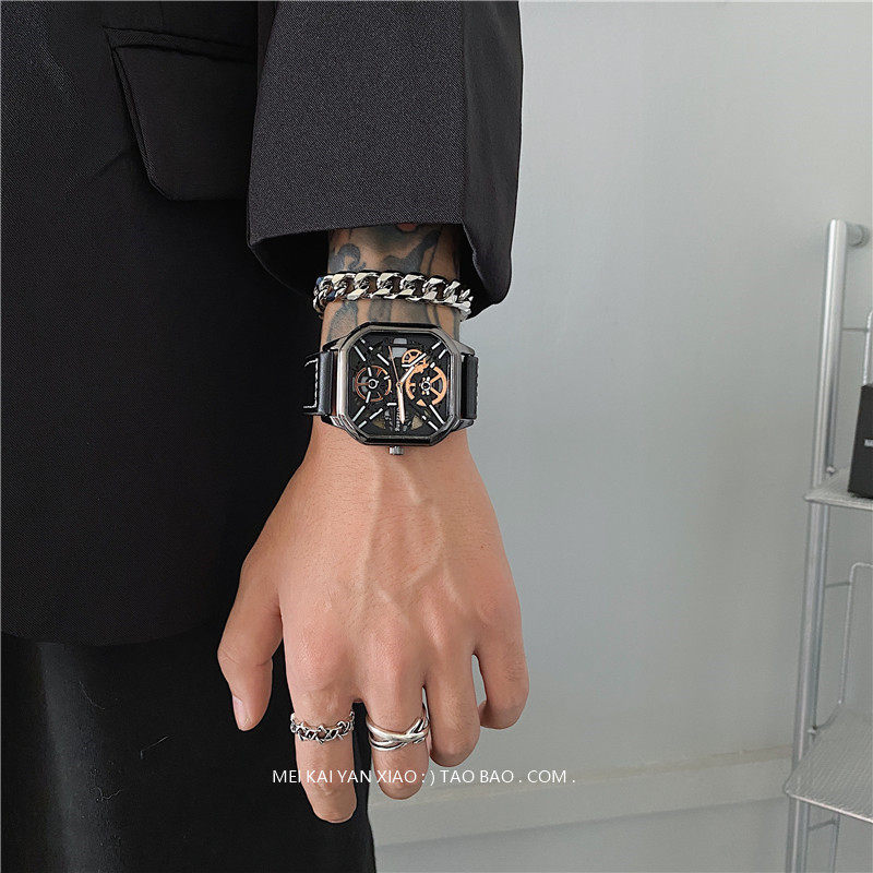 Мужской циферблат, квадратные модные трендовые швейцарские часы, подходит для подростков, подходит для студента, мужской стиль