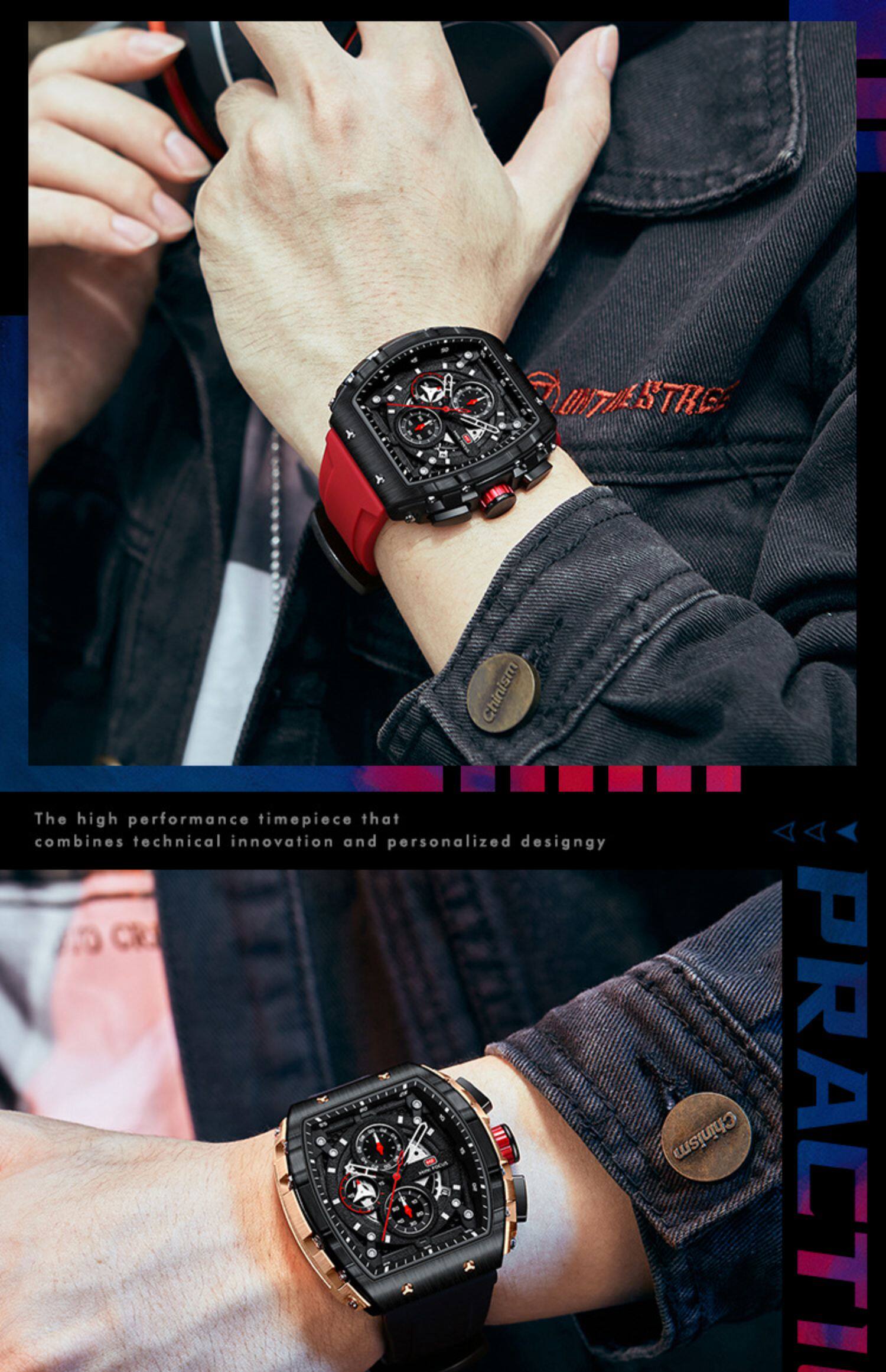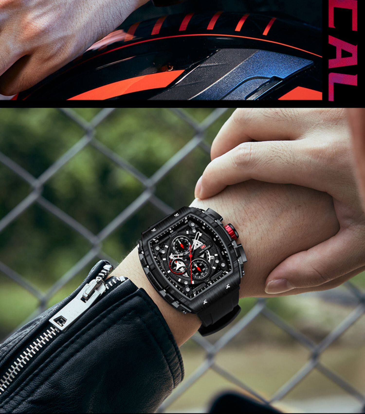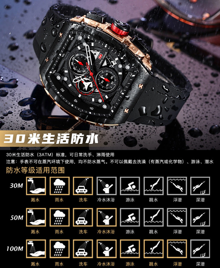 Модные мужские часы, механический водонепроницаемый циферблат