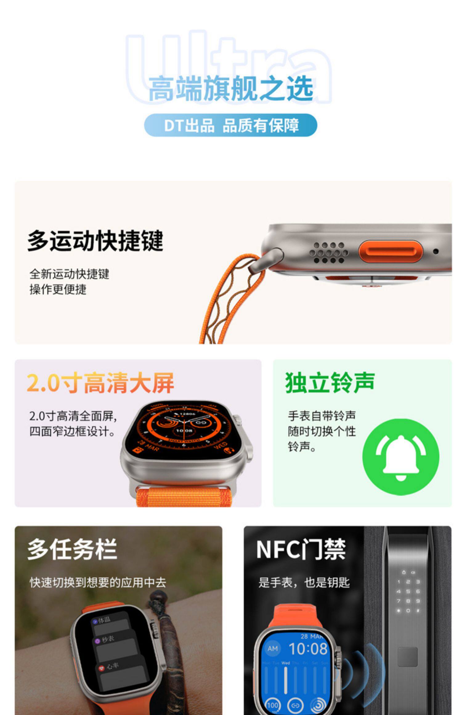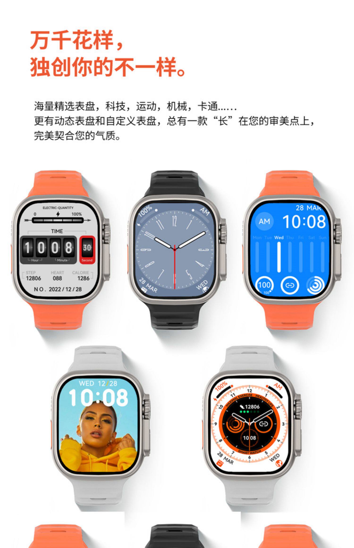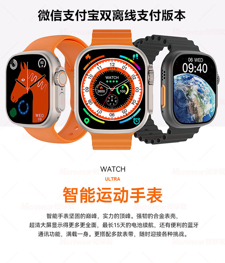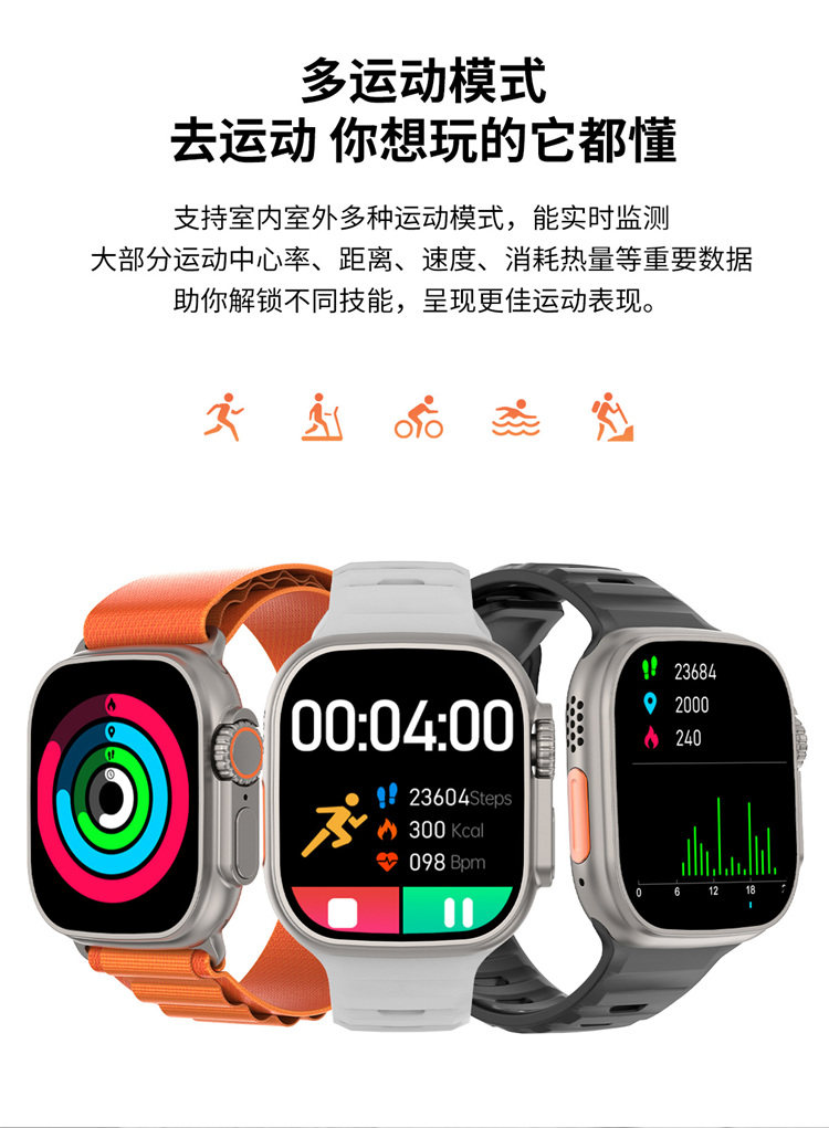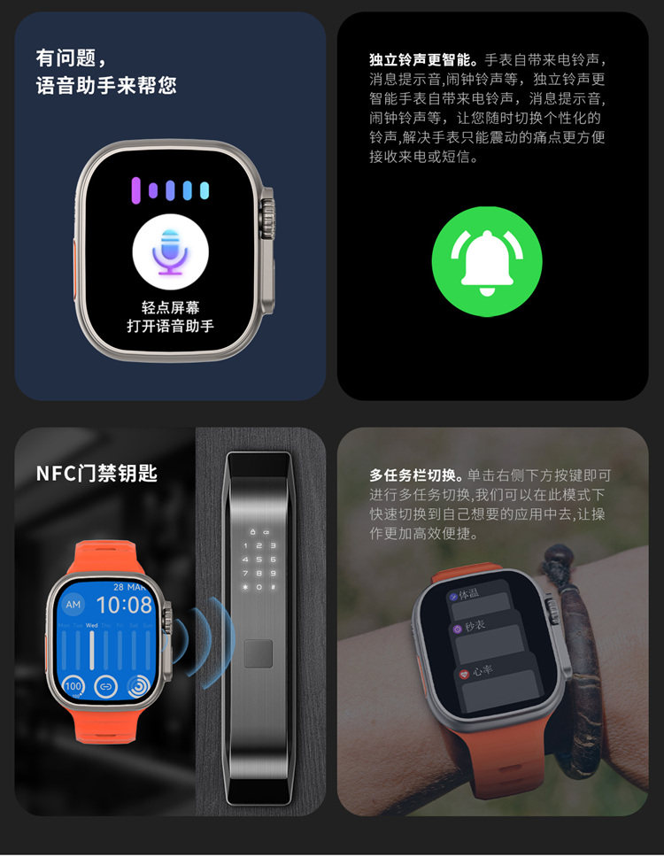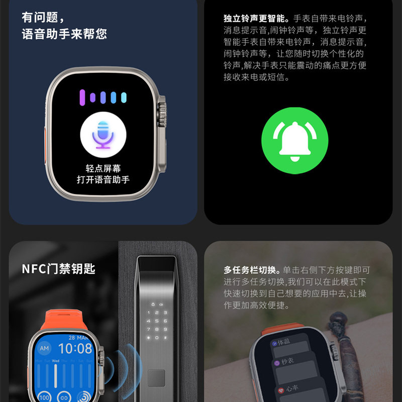 Подлинные Ultra Watch S8 Мужчины и женские студенты Тенденция многофункциональная черная технология Электронные часовые звонки Android System