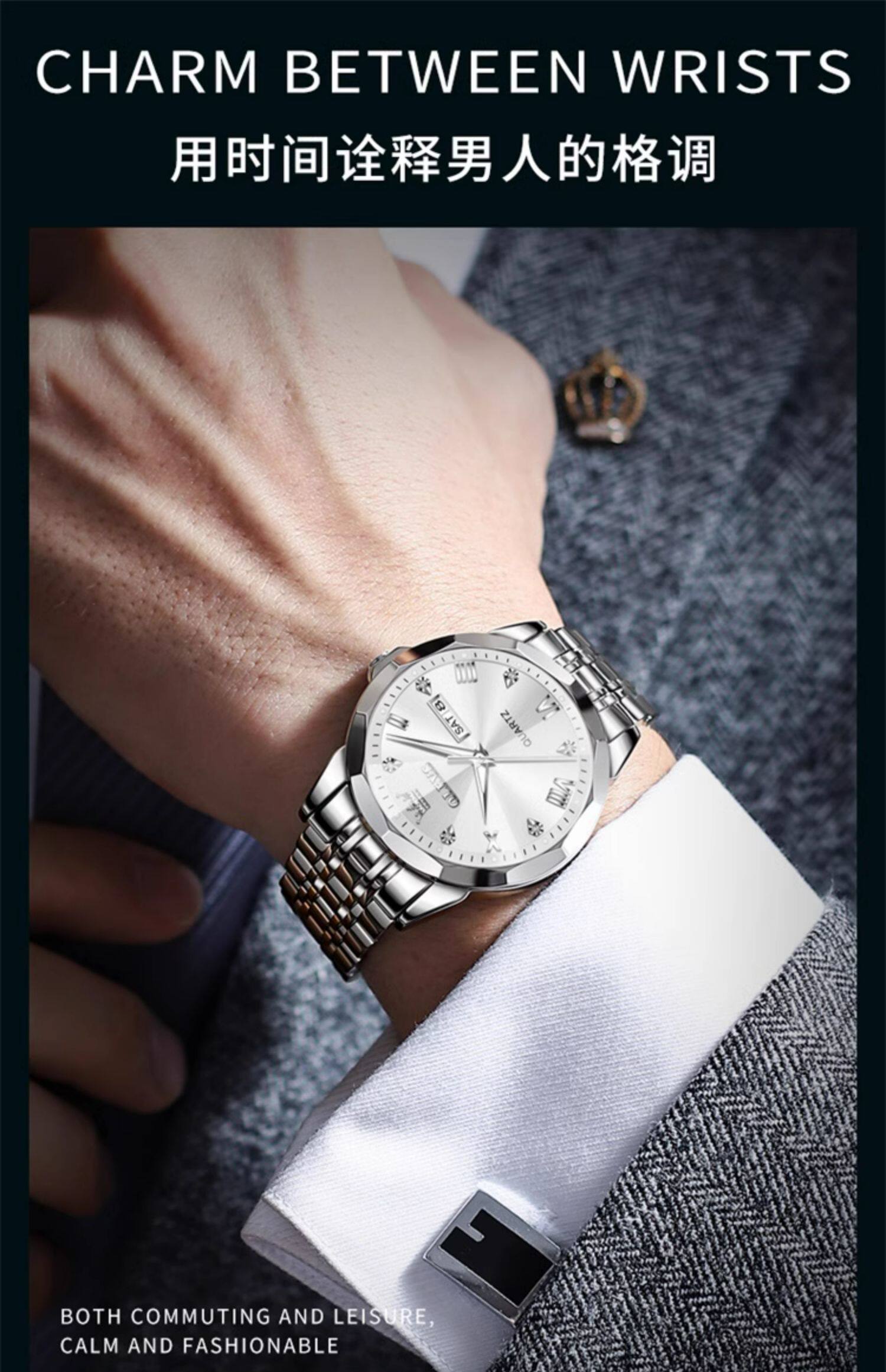 Швейцарские часы, мужские часы, механические механические часы, водонепроницаемый кварцевый стальной ремешок, полностью автоматический