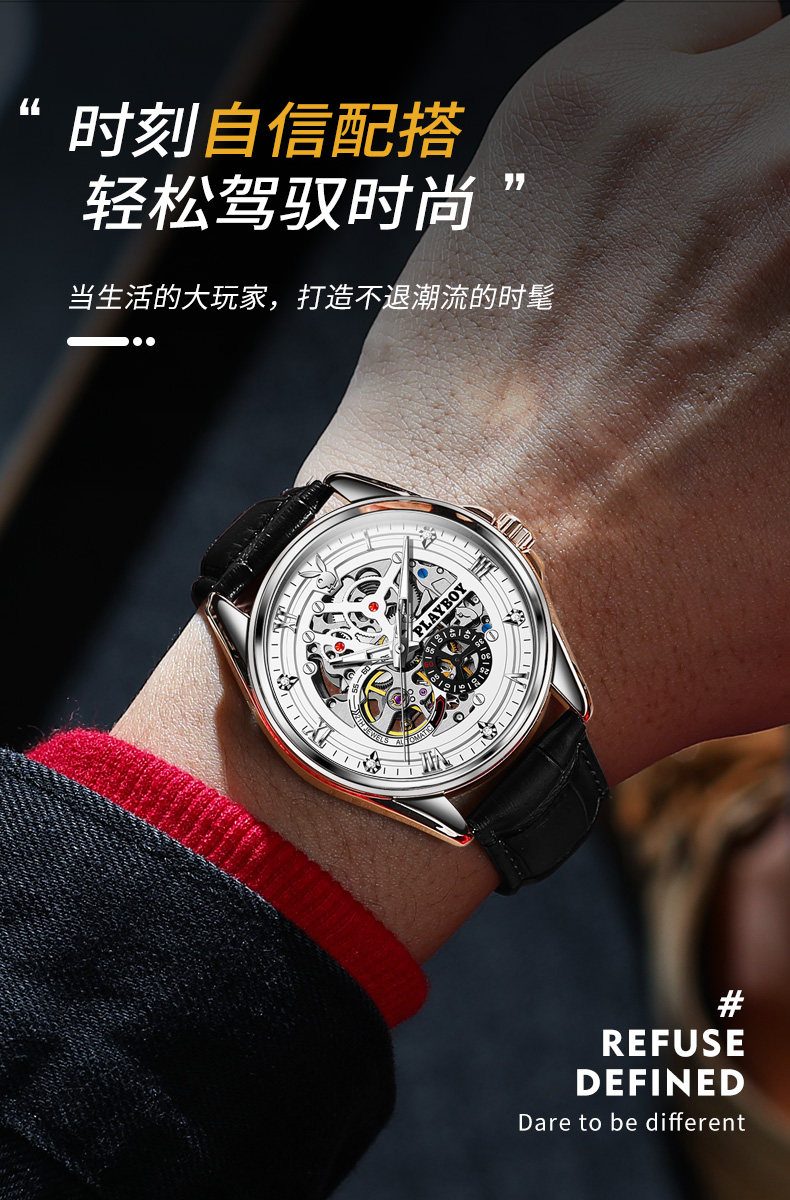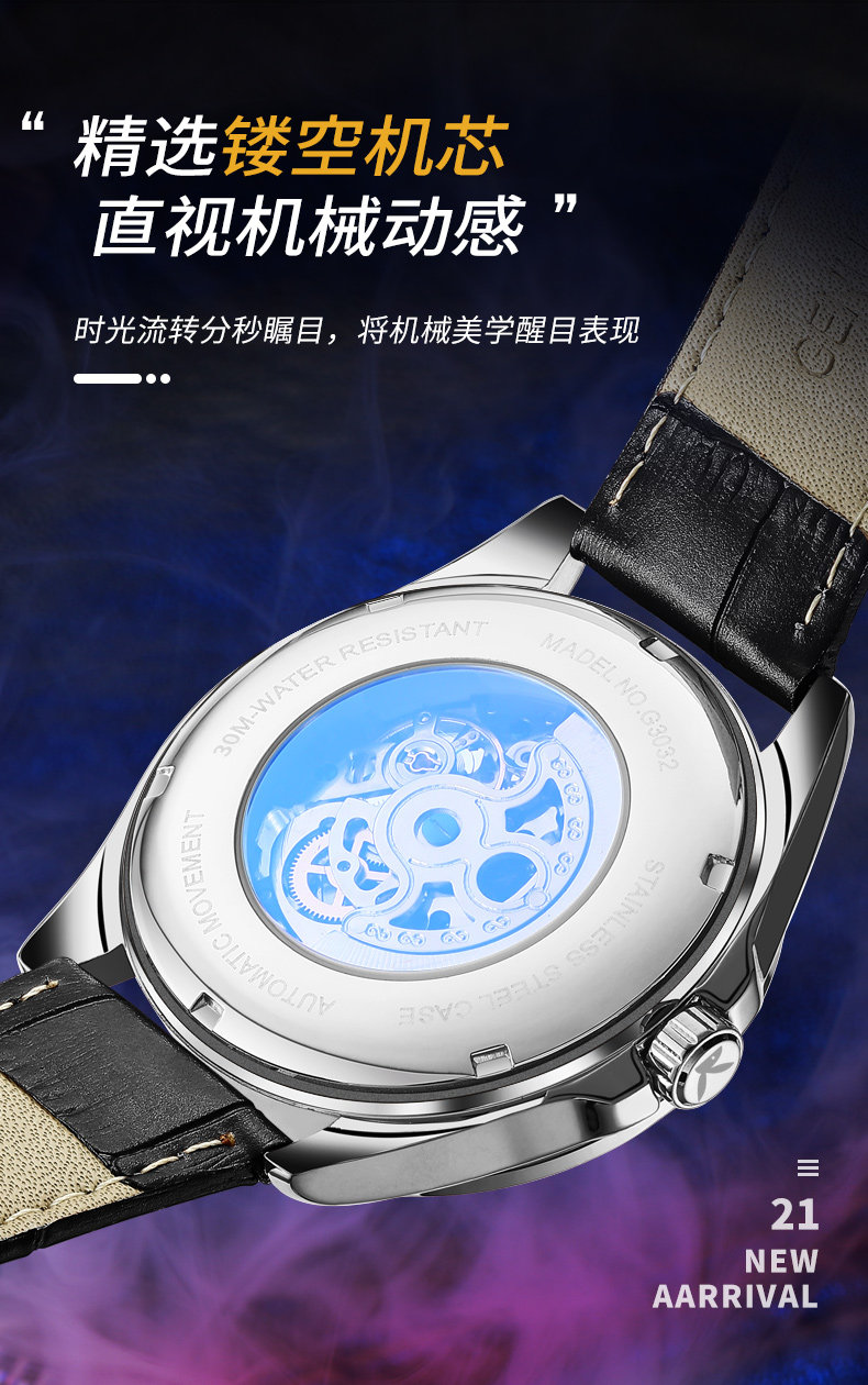 Модные швейцарские часы, ремень, механические водонепроницаемые механические часы, полностью автоматический
