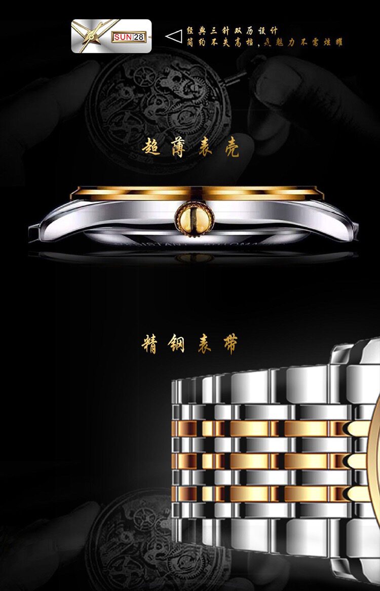 Механические водонепроницаемые механические часы, мужской календарь, швейцарские часы, ультратонкие мужские часы, Швейцария, полностью автоматический, в корейском стиле, простой и элегантный дизайн