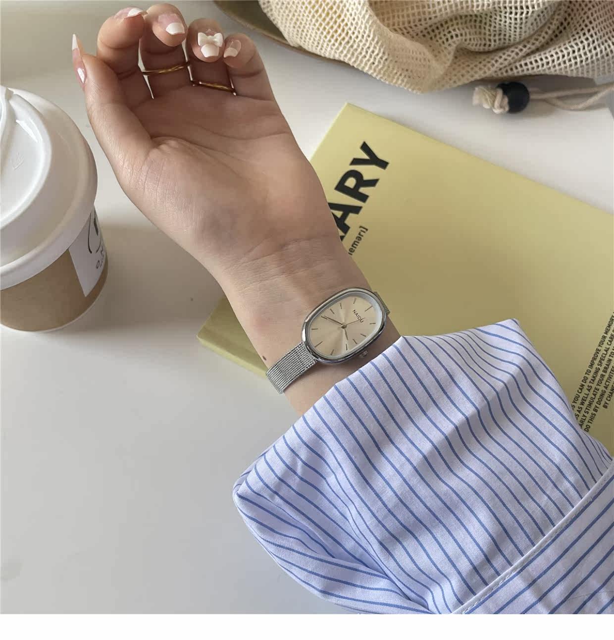 Серебряные небольшие кварцевые часы, браслет, простой и элегантный дизайн
