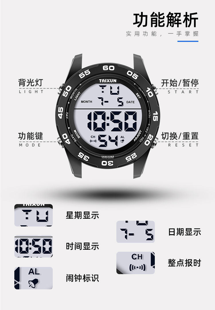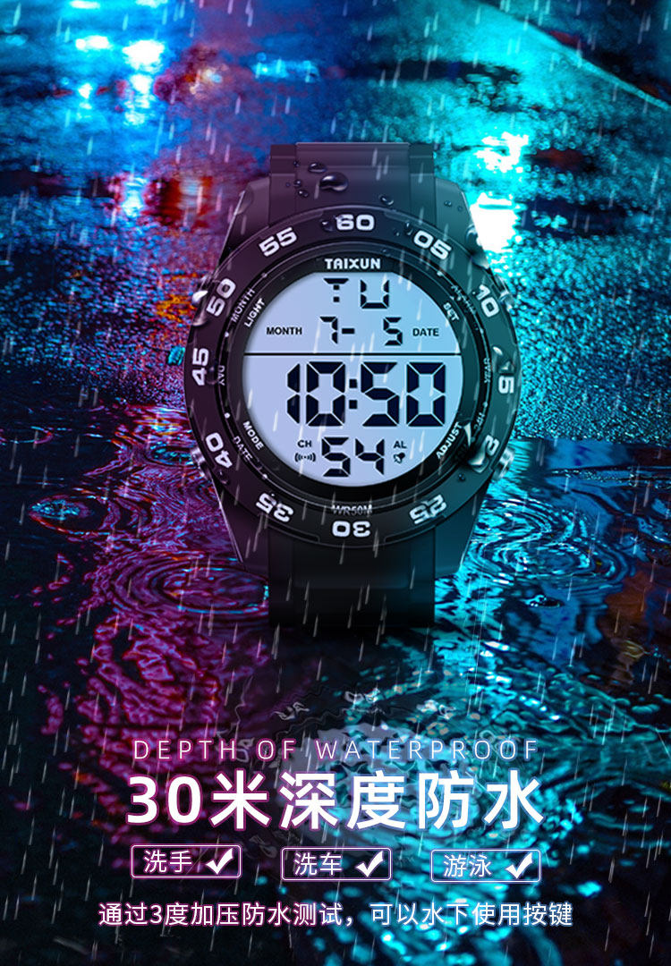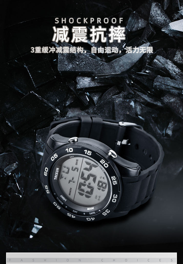 Водонепроницаемые универсальные мужские часы, дорожные трендовые цифровые часы, защита при падении