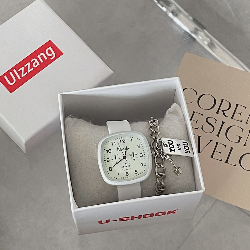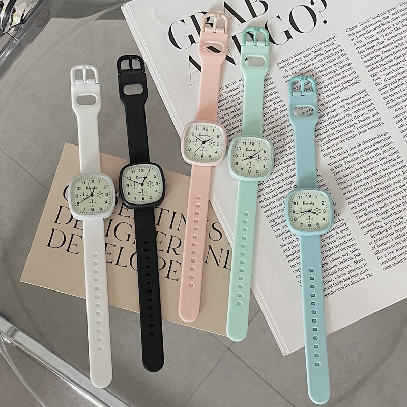 Японская силиконовая квадратная модная свежая лента, кварцевые часы, для средней школы, новая коллекция