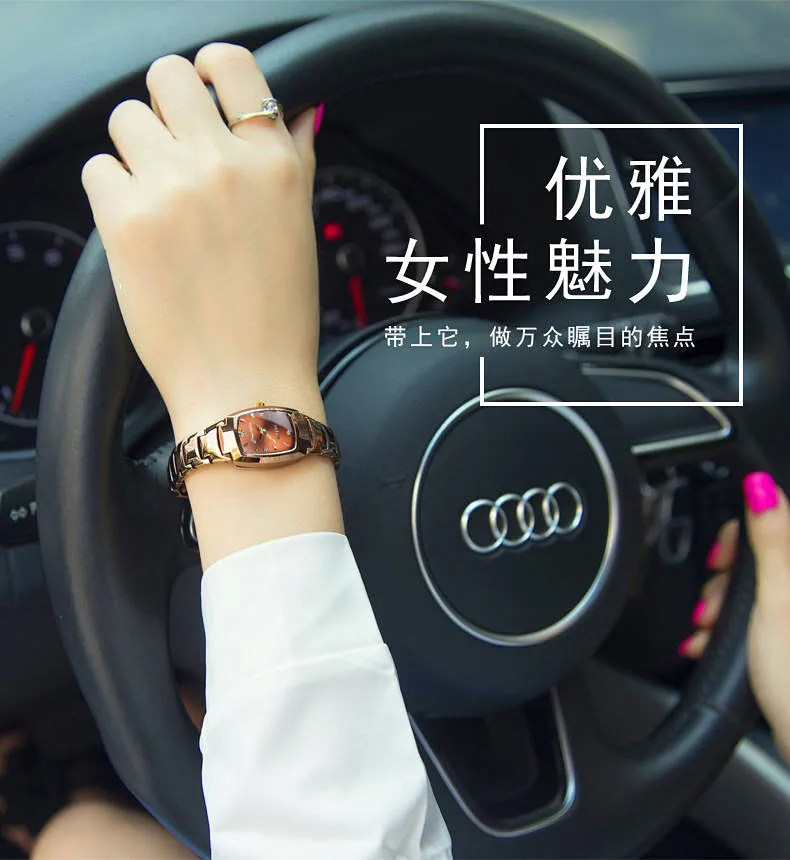 Водонепроницаемые женские часы, модный трендовый циферблат, кварцевые часы, Вольфрамовая сталь, женский стиль, простой и элегантный дизайн, яркий броский стиль, маленький циферблат