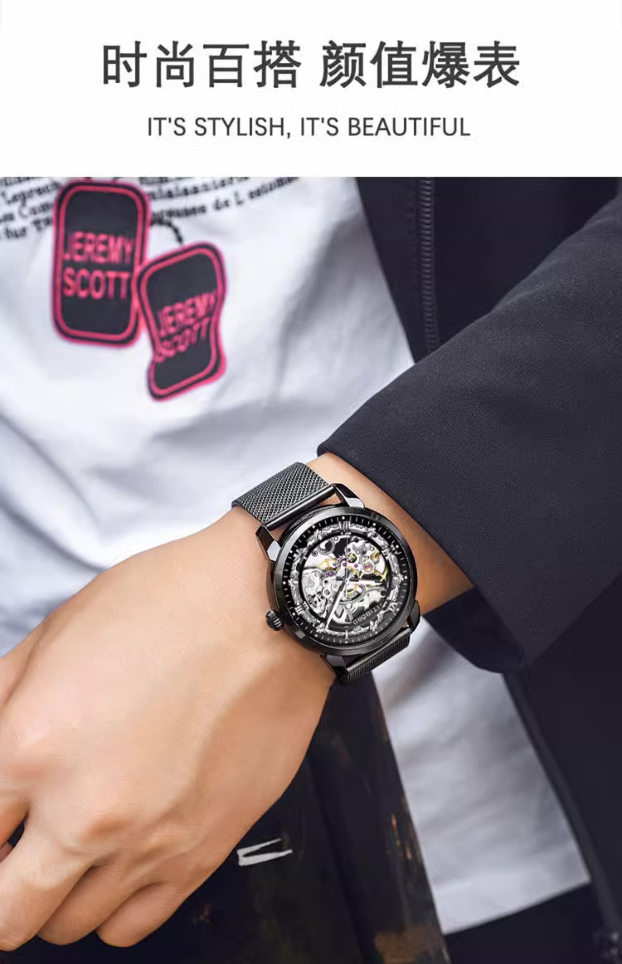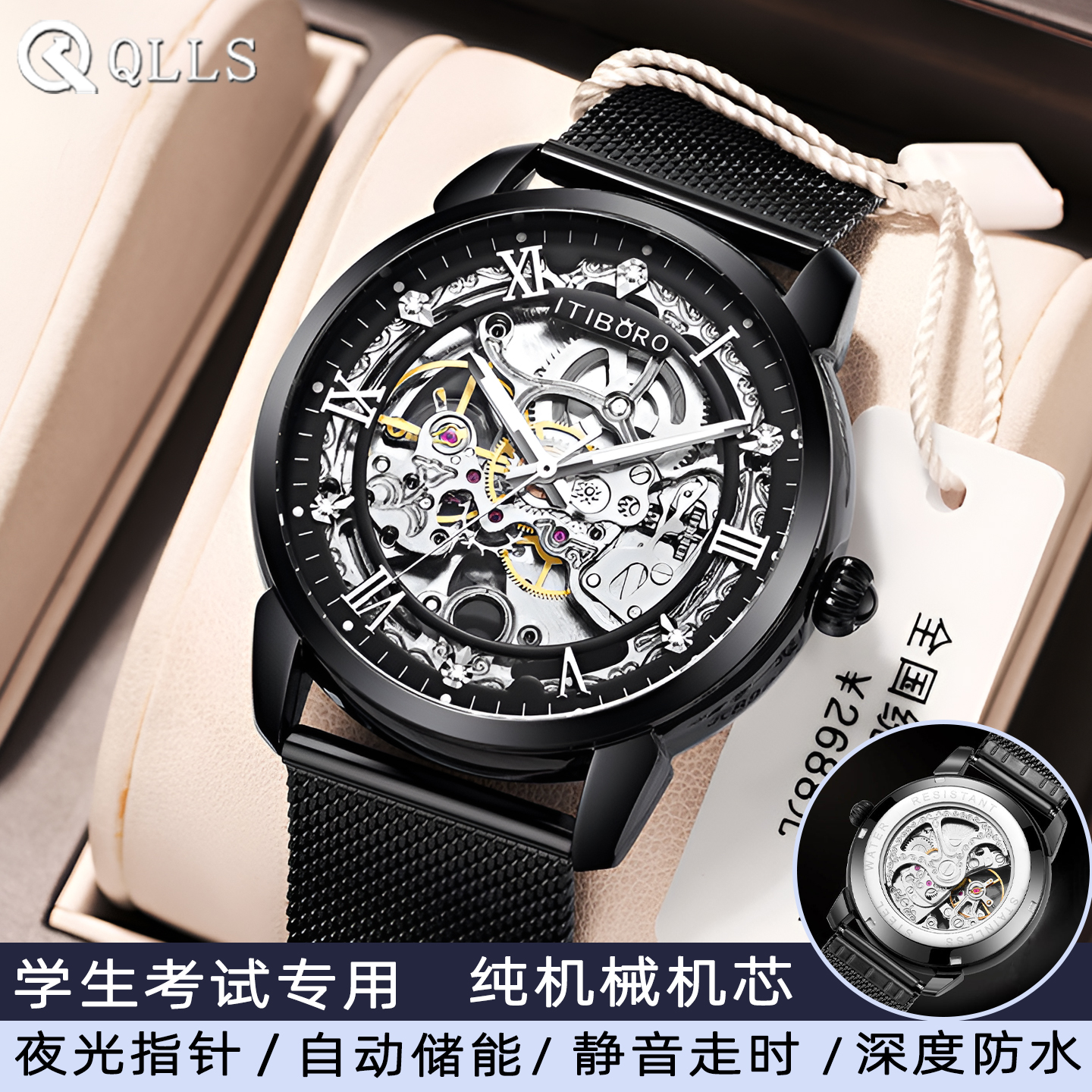 Механические механические часы, водонепроницаемые модные мужские часы, полностью автоматический, Швейцария