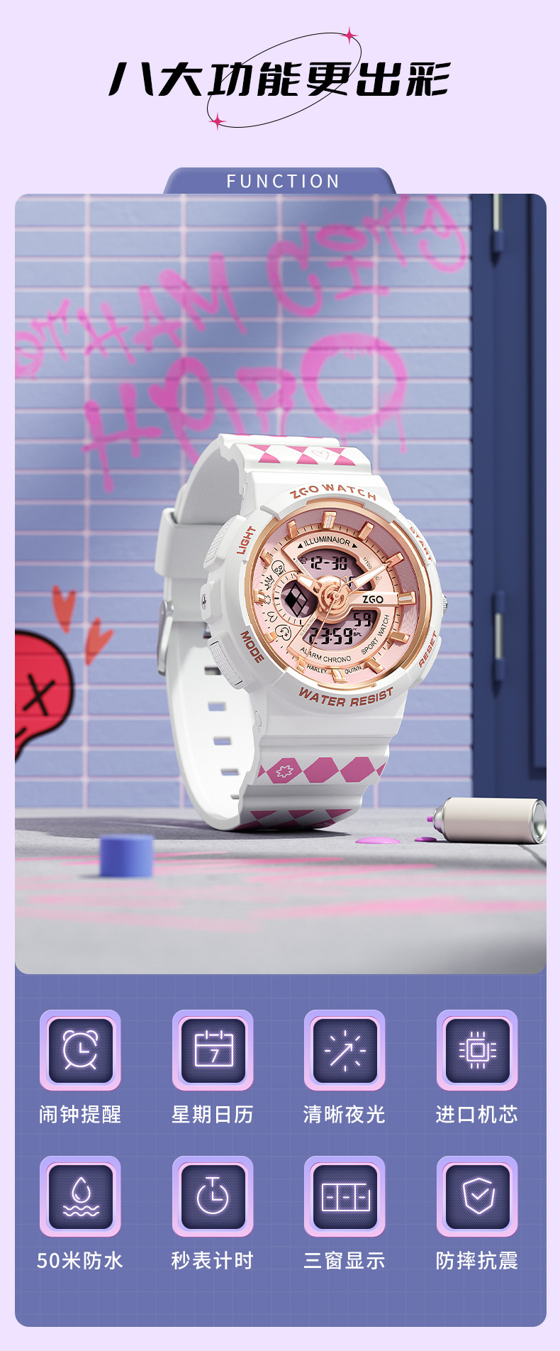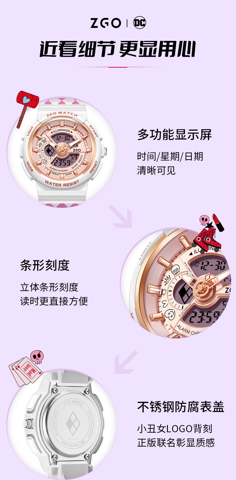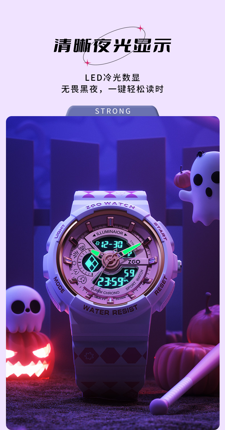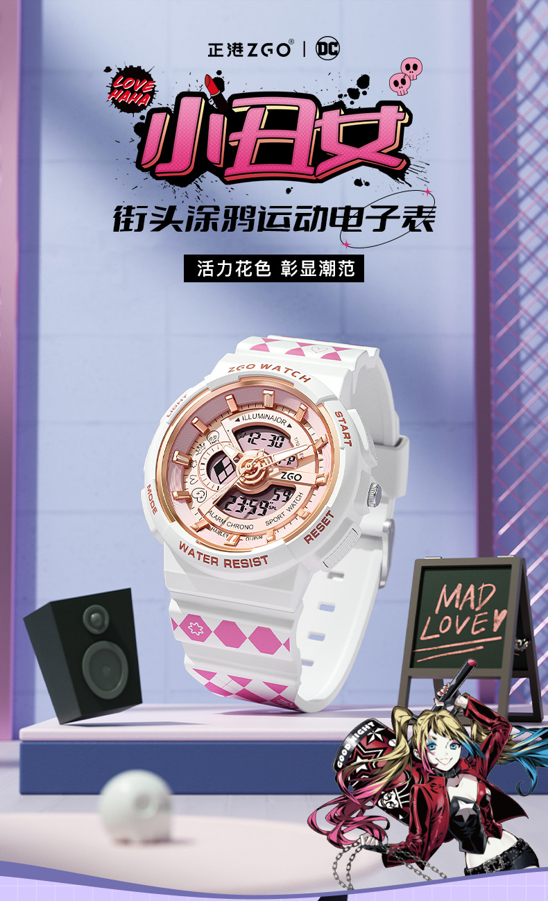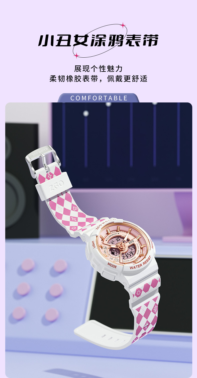 Zhenggang Zgox Clown женский студенческий студент студент студент -студент -студент Street Street Sports Водонепроницаемые электронные механические часы