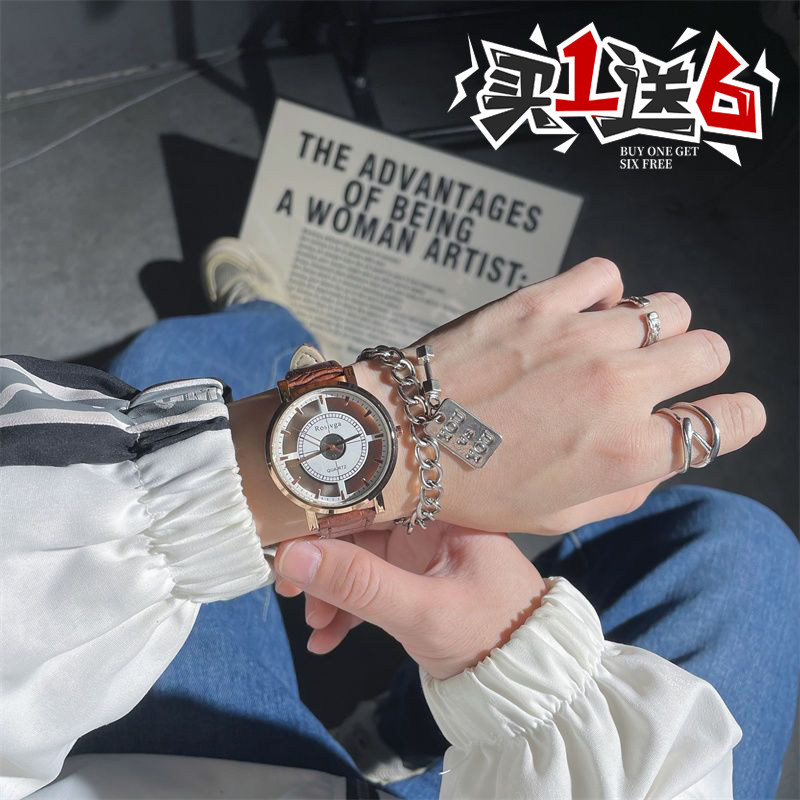 Трендовые механические кварцевые мужские часы подходит для мужчин и женщин, в корейском стиле, простой и элегантный дизайн