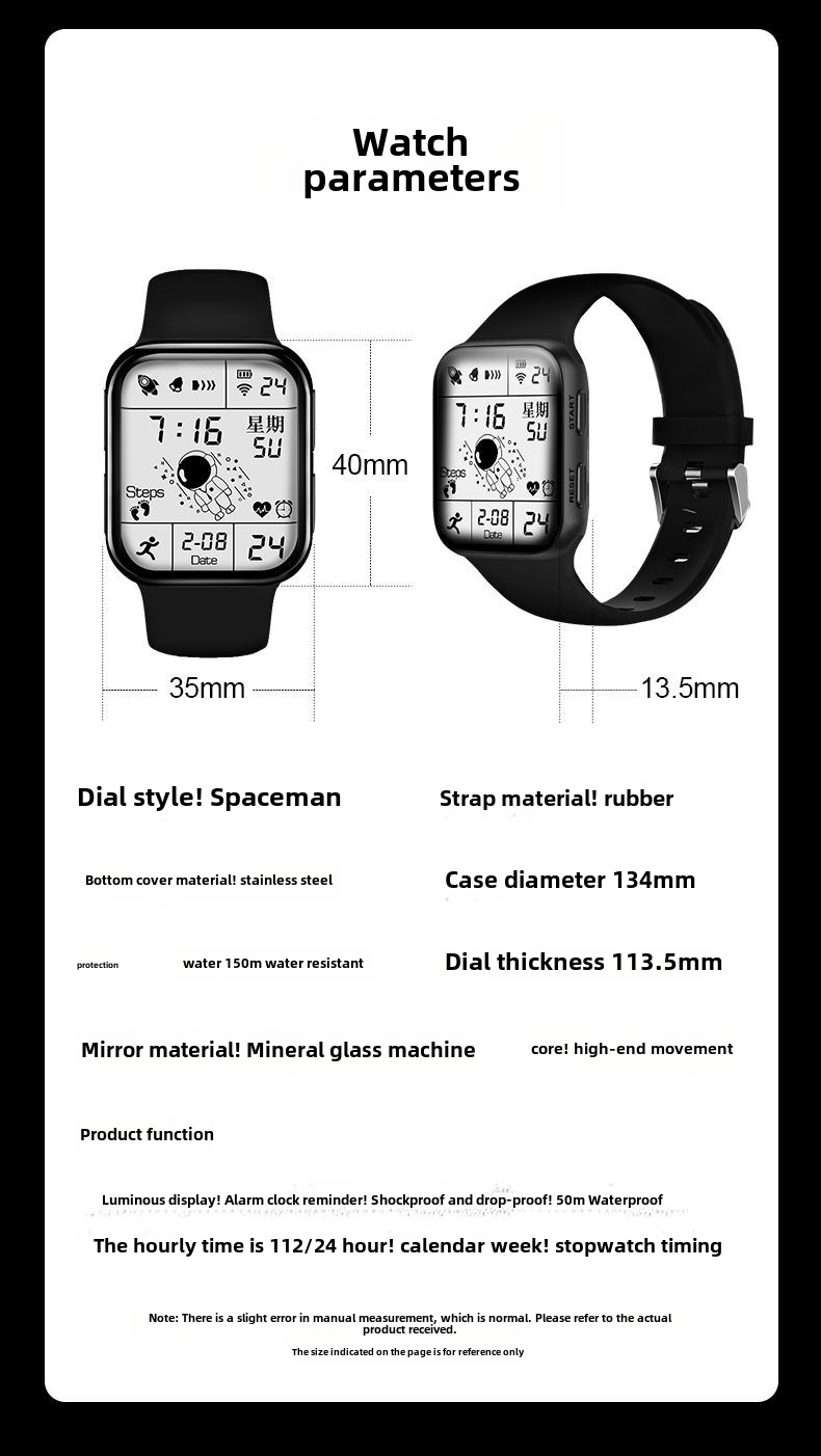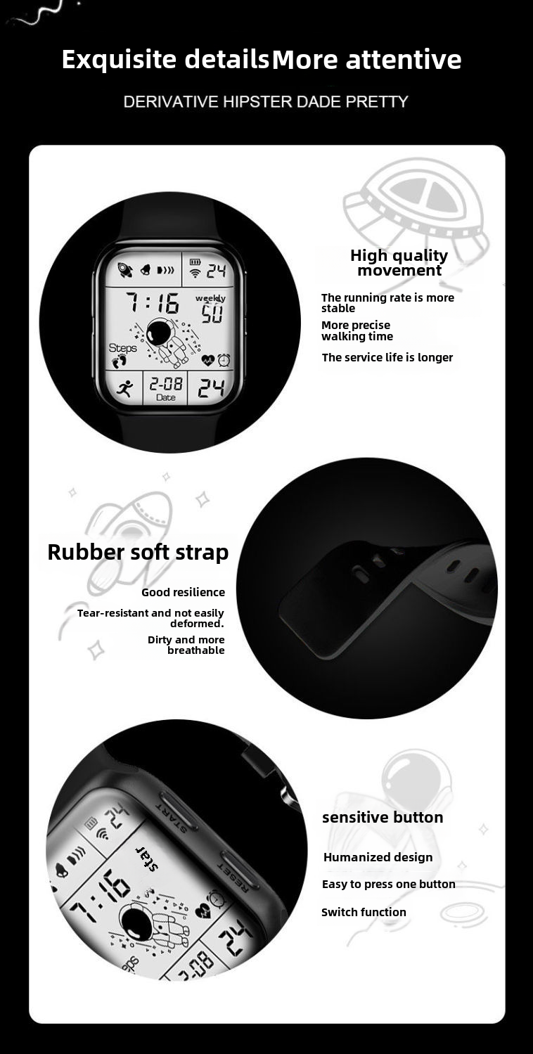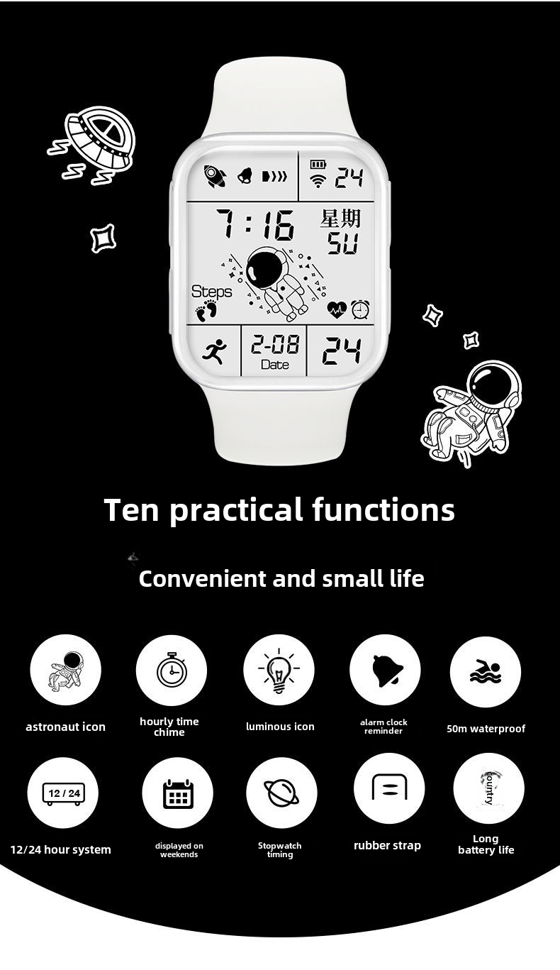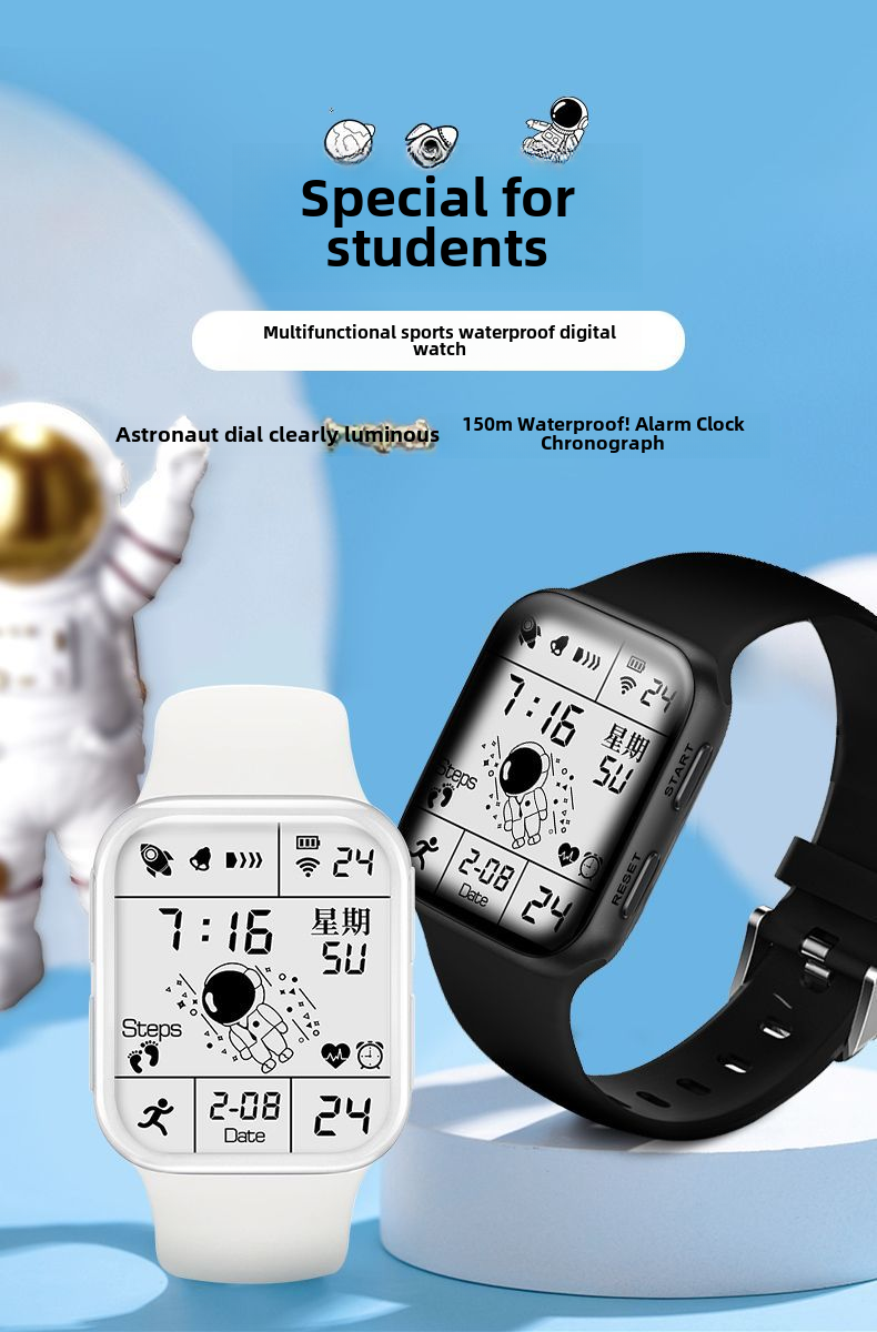 Универсальный космонавт подходит для мужчин и женщин, водонепроницаемые электрические цифровые часы, наука и технология