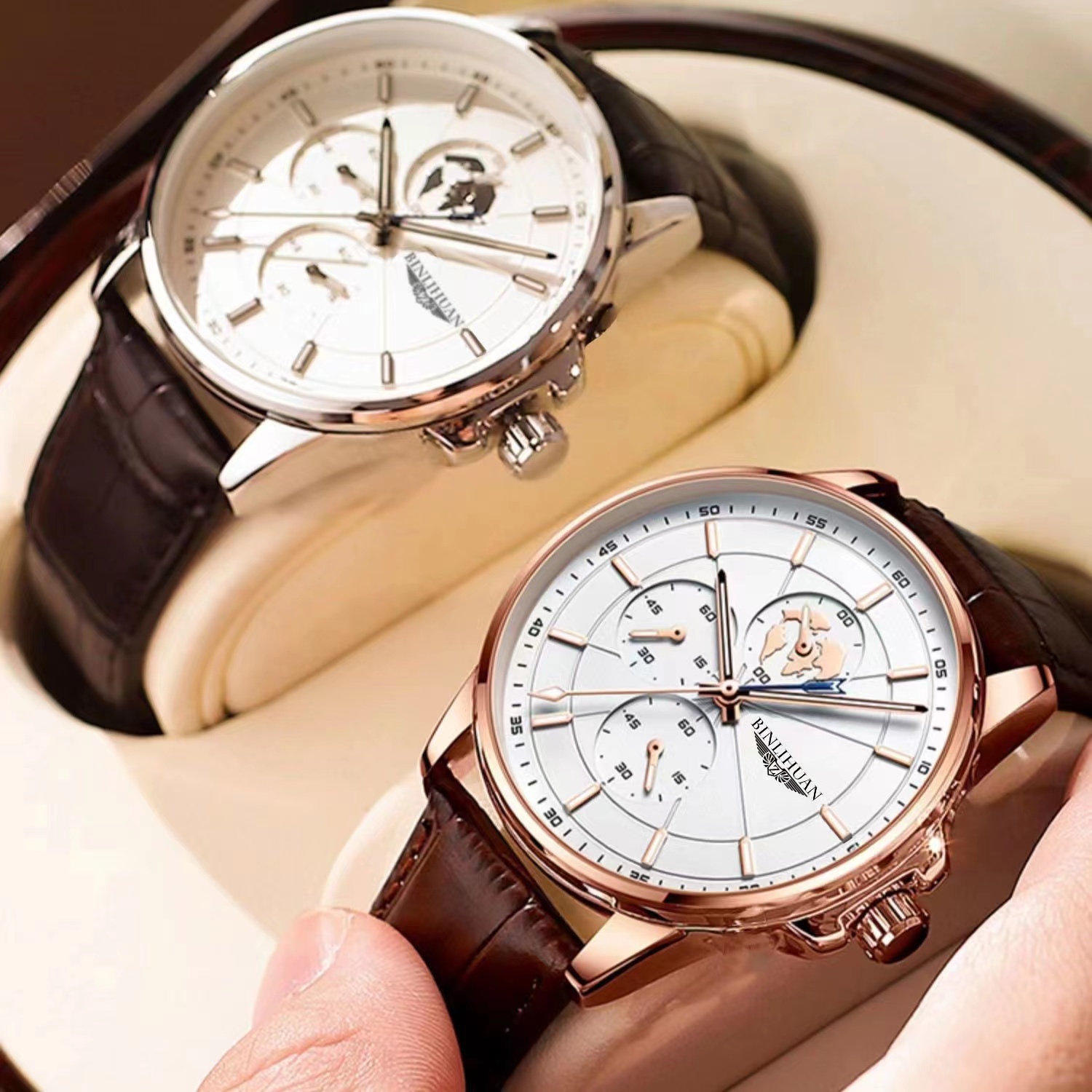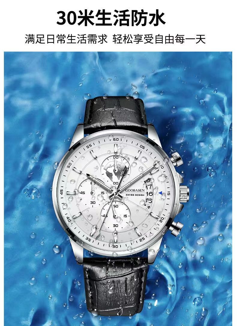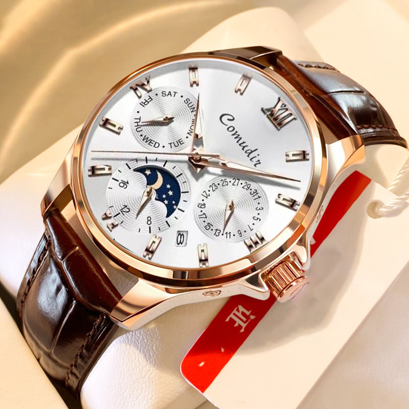 Швейцарские часы, мужские часы, водонепроницаемый модный ремень, кварцевые часы, 2024 года, изысканный стиль, полностью автоматический