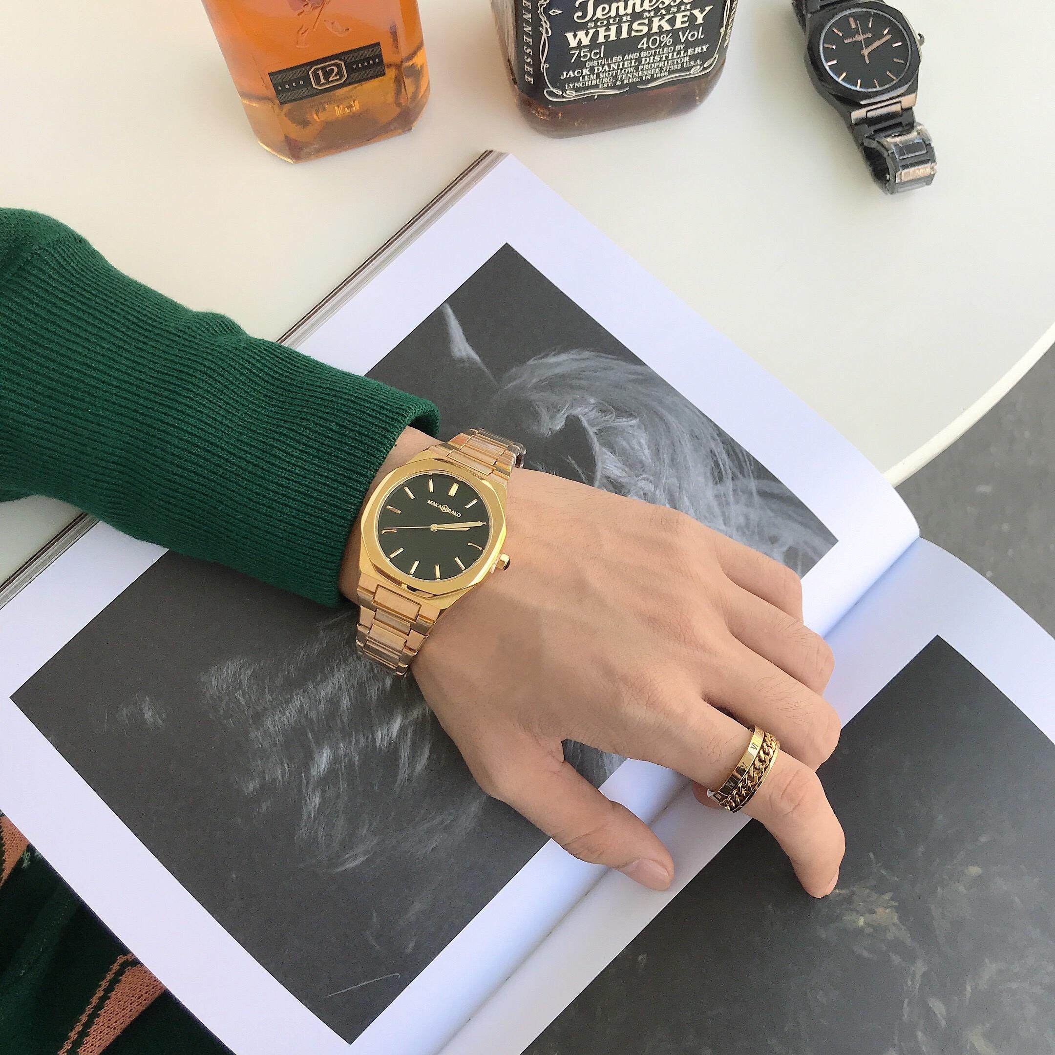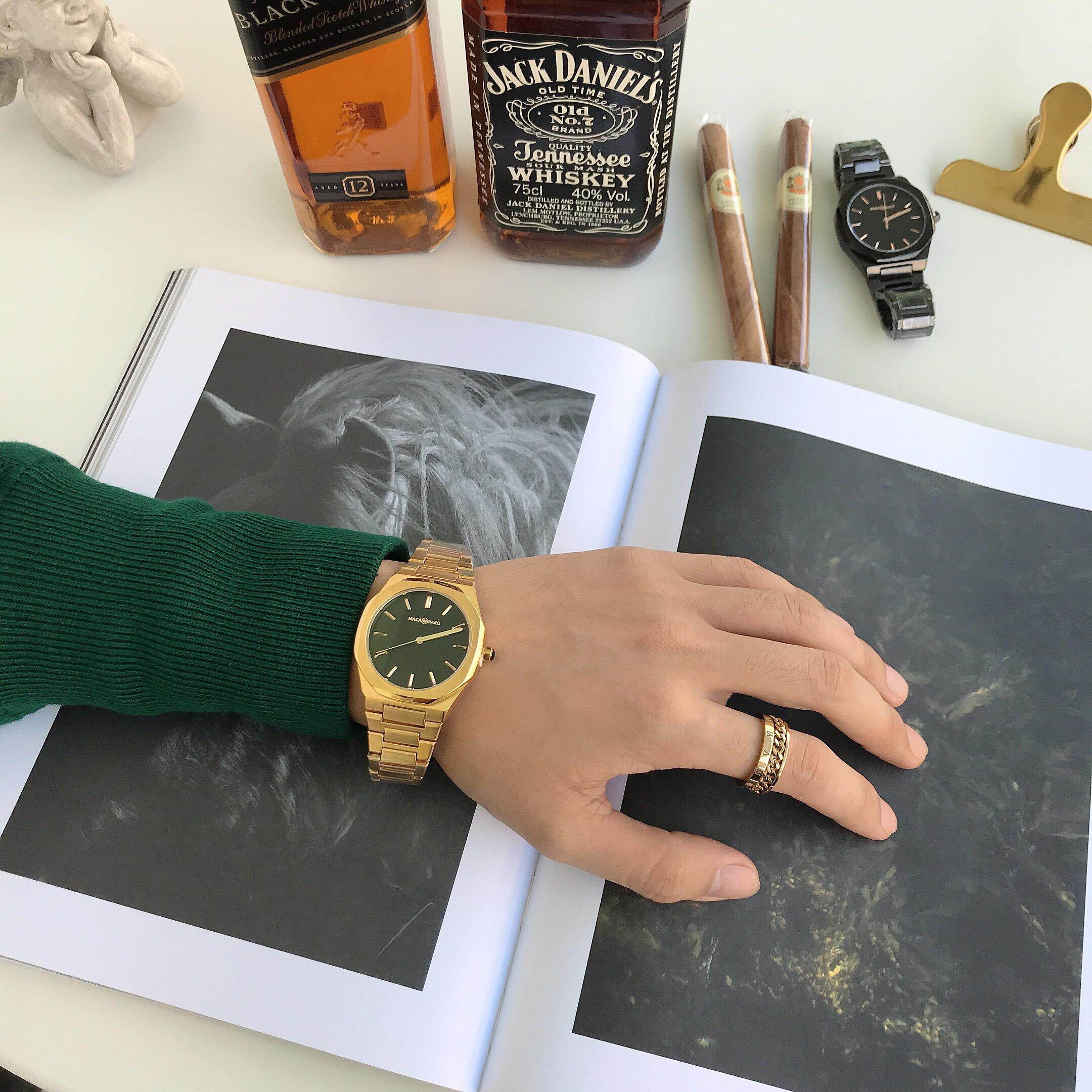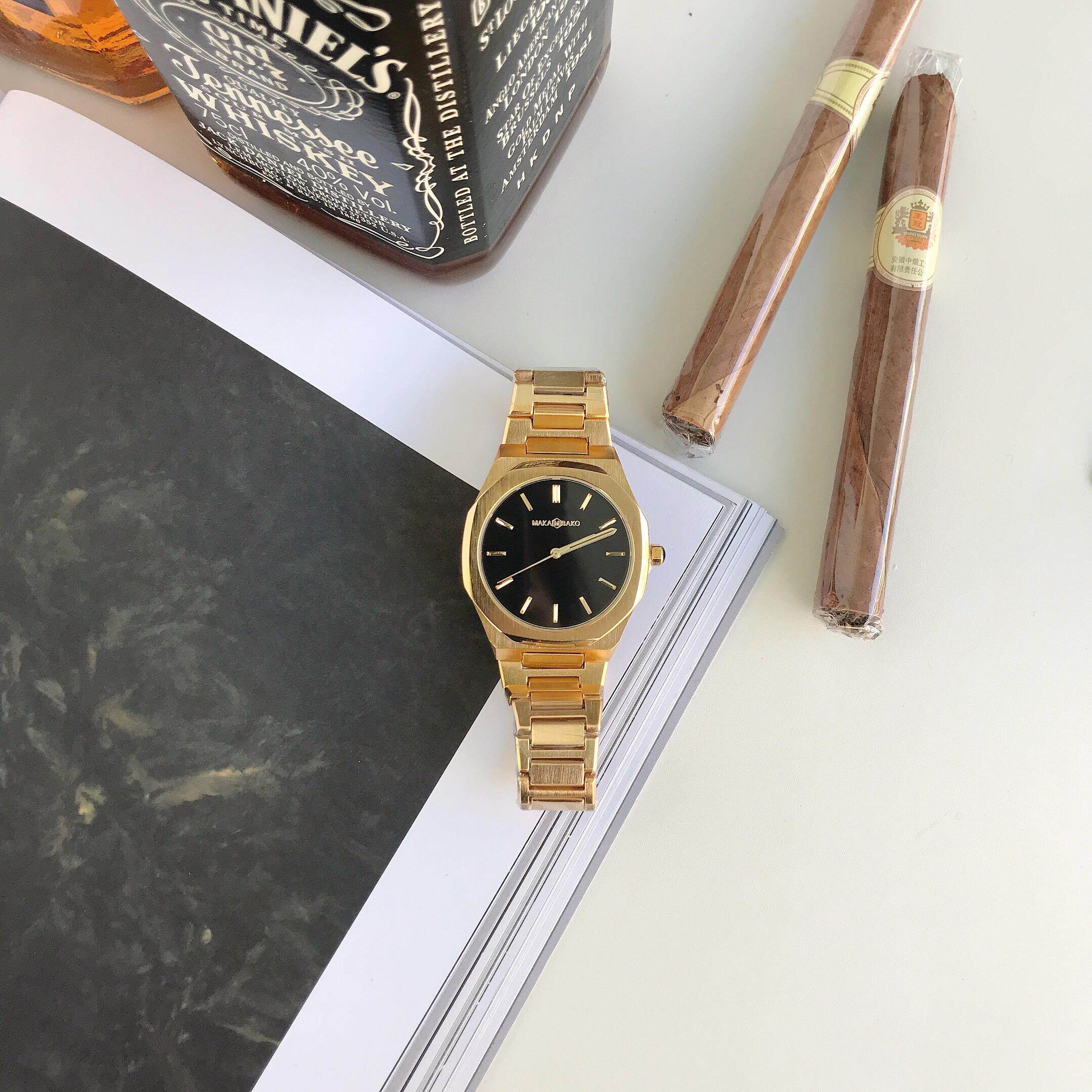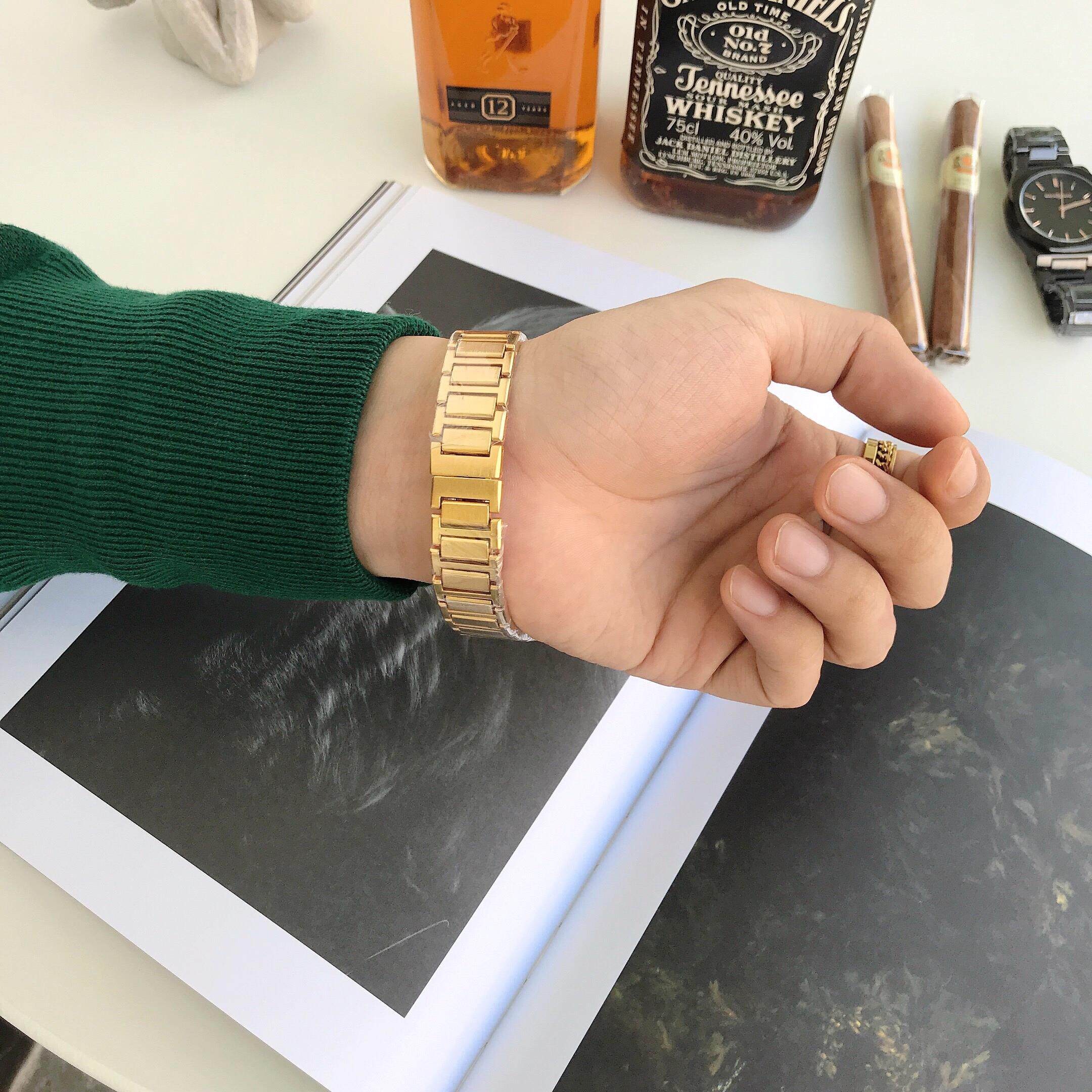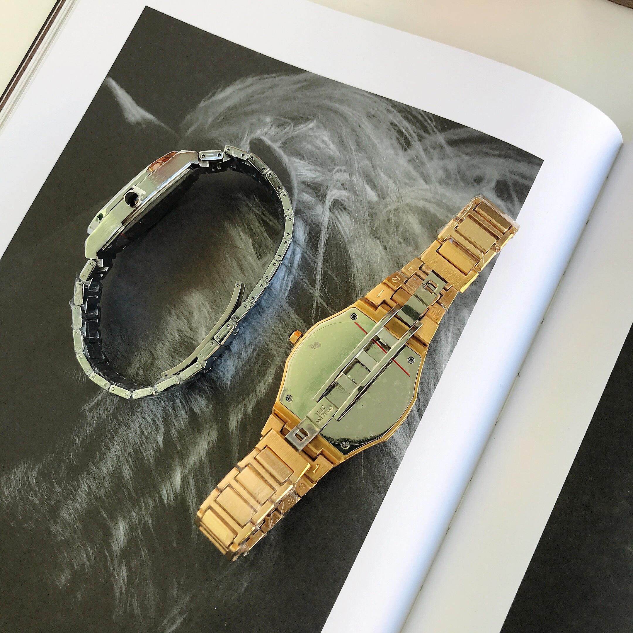 Квадратный ретро стальной ремешок, спортивные водонепроницаемые золотые часы, трендовые кварцевые часы