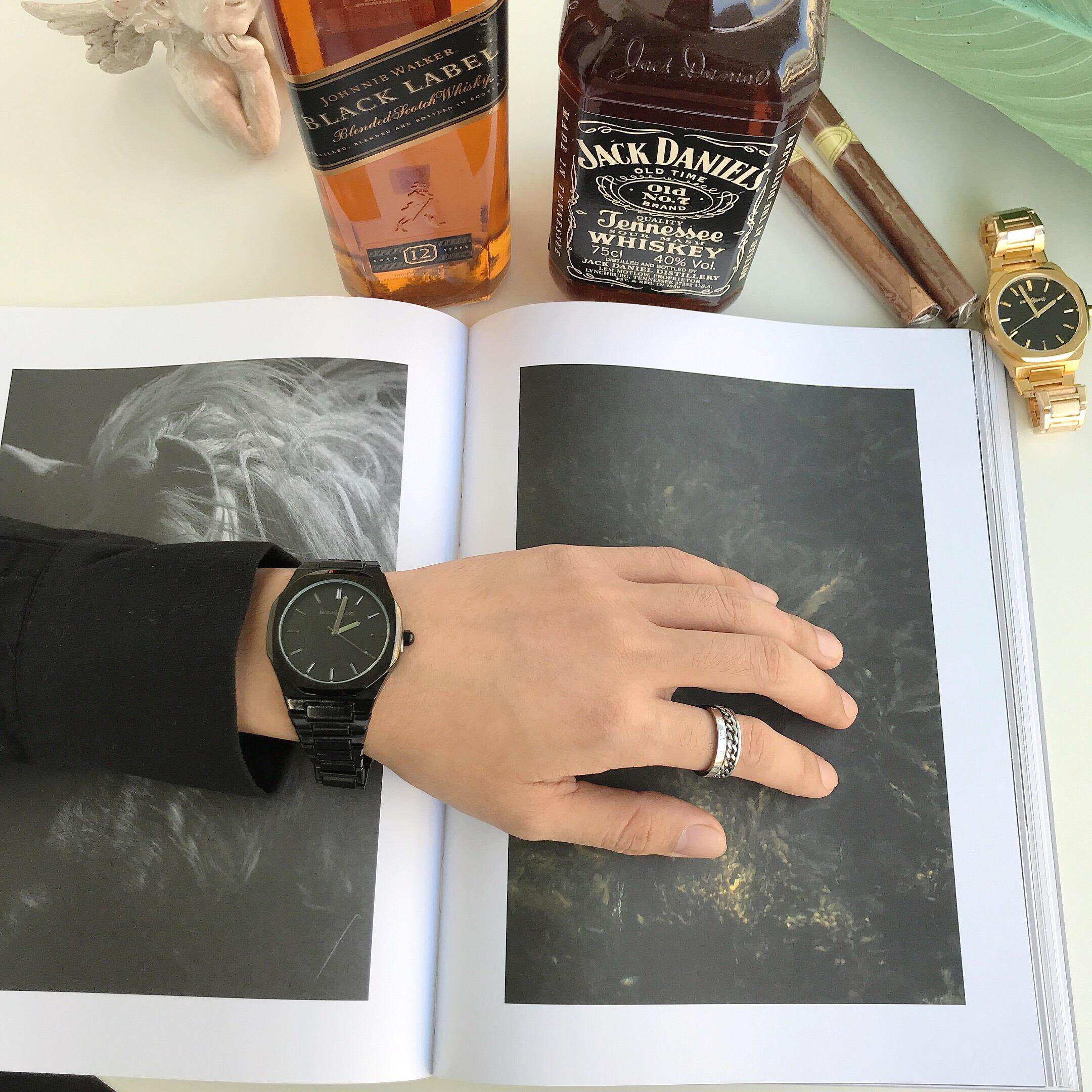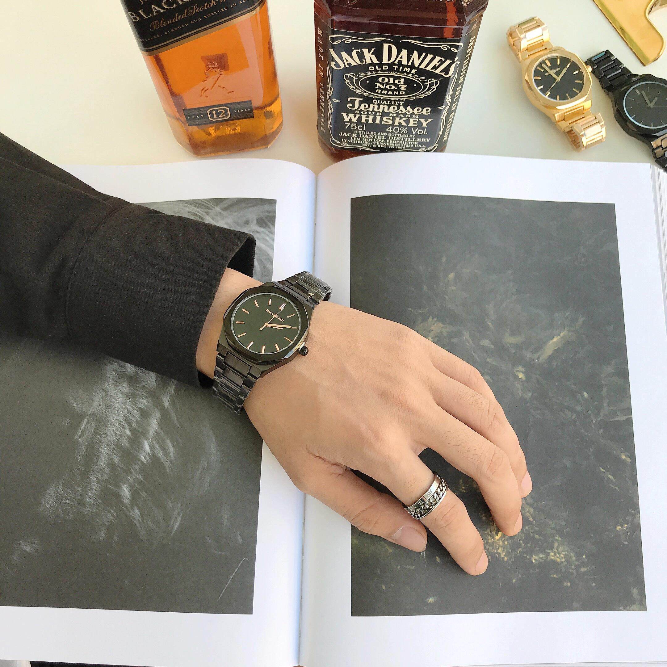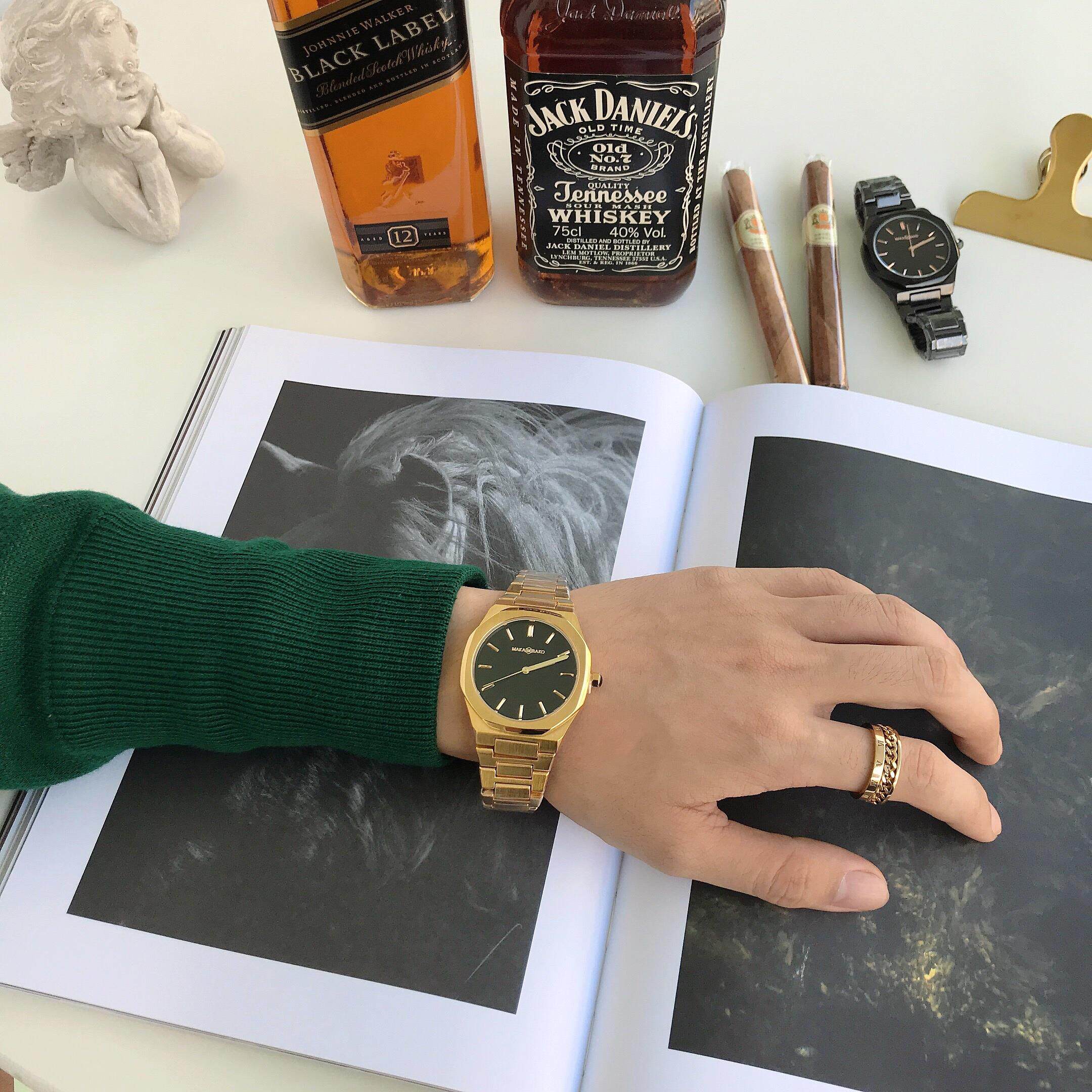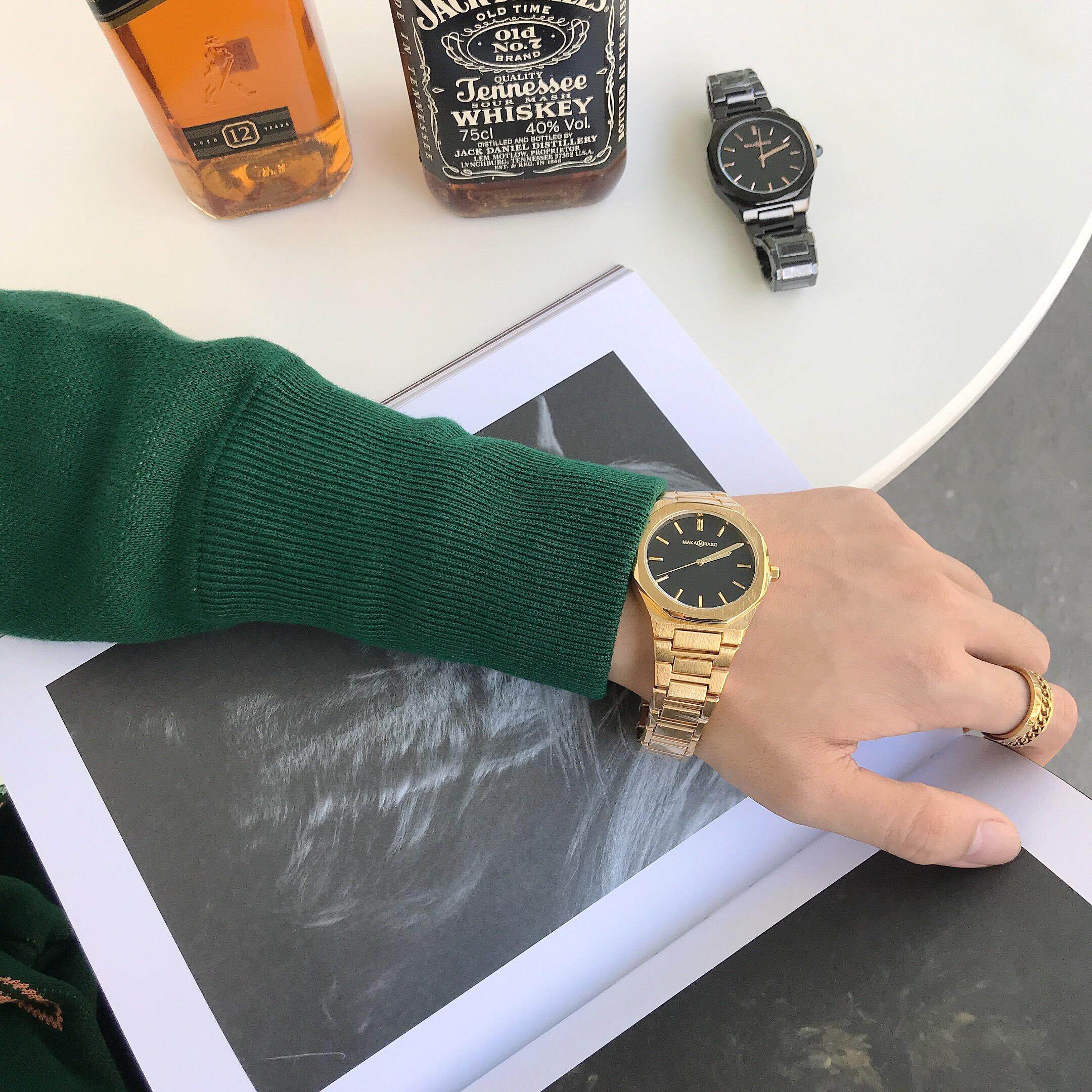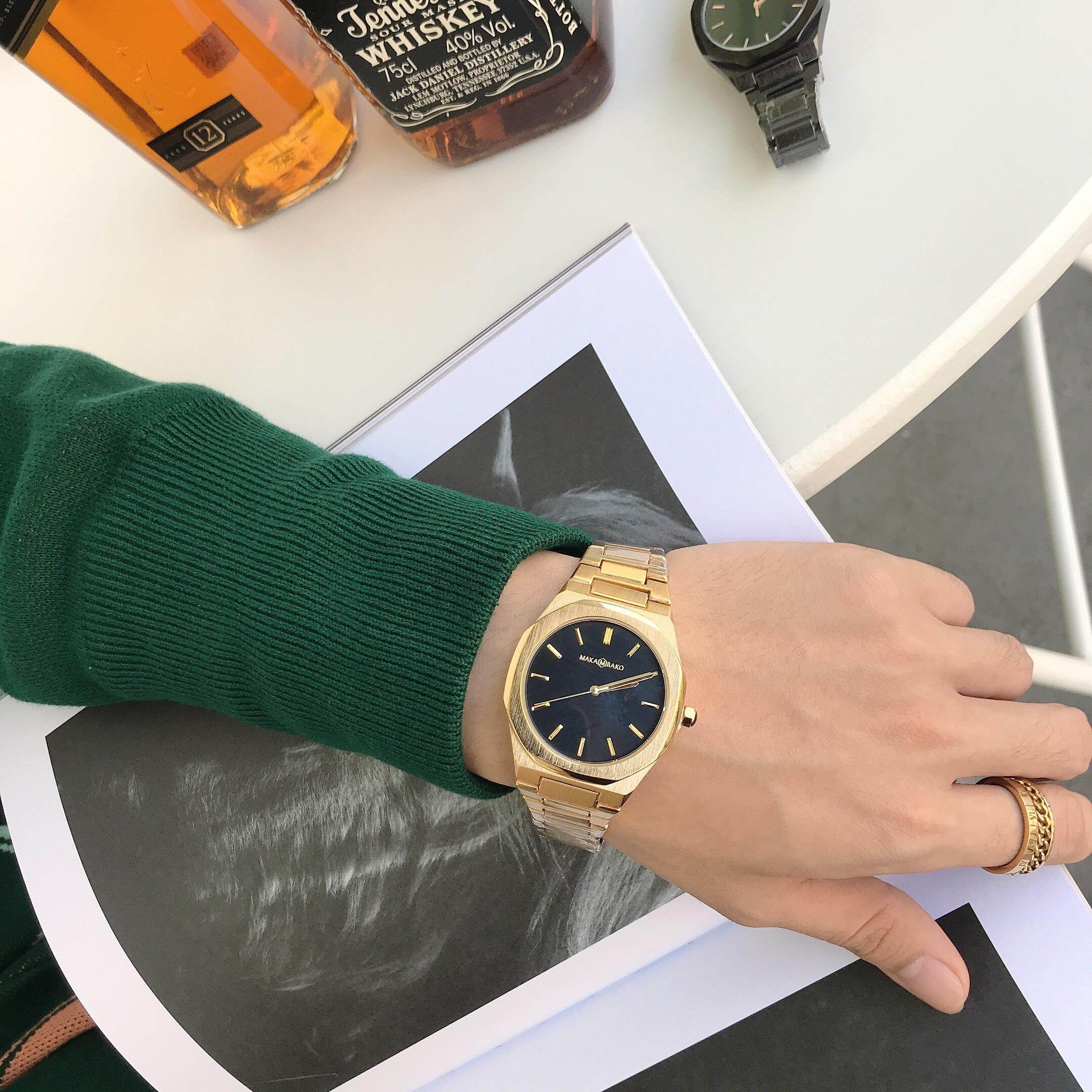Квадратный ретро стальной ремешок, спортивные водонепроницаемые золотые часы, трендовые кварцевые часы
