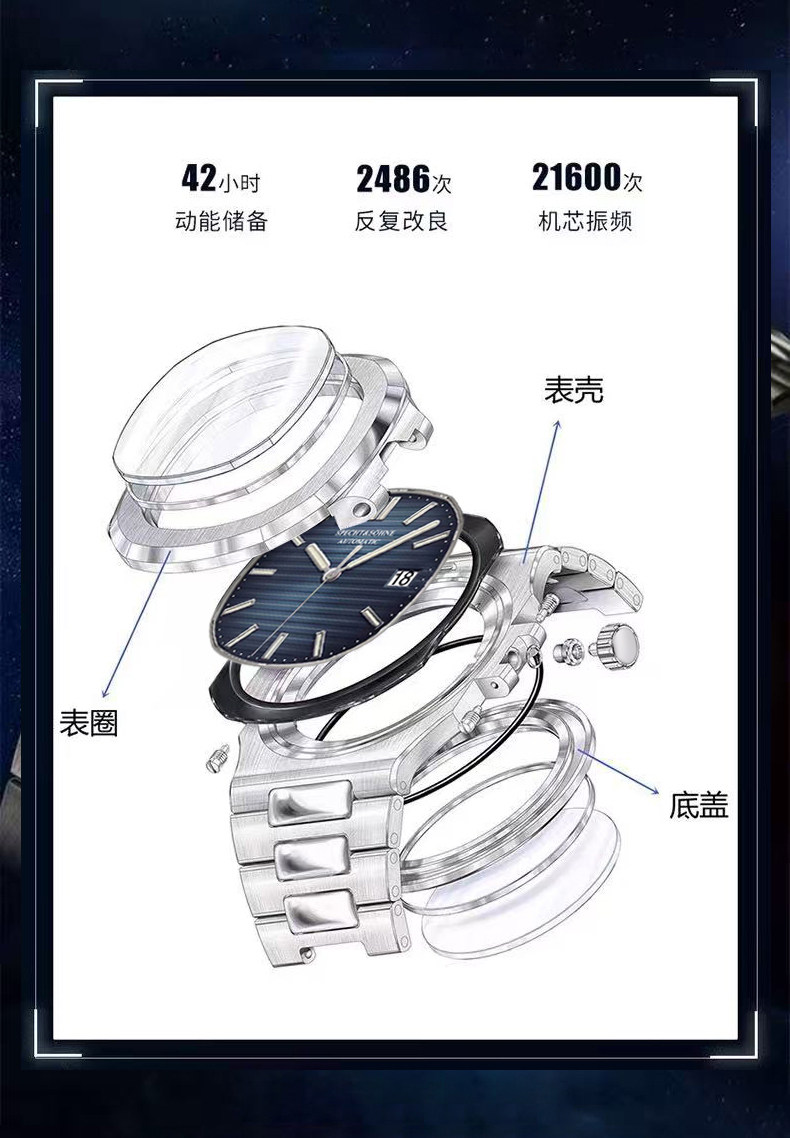 Мужские часы, механические классические водонепроницаемые высококлассные механические часы, полностью автоматический